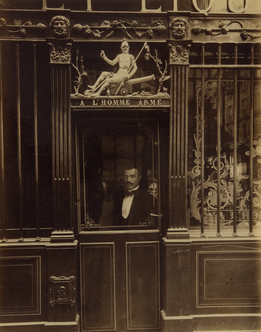 An evocative document of vanishing Parisian street life, this albumen print captures the weathered facade of a historic cabaret with the photographer's characteristic attention to atmospheric detail.
