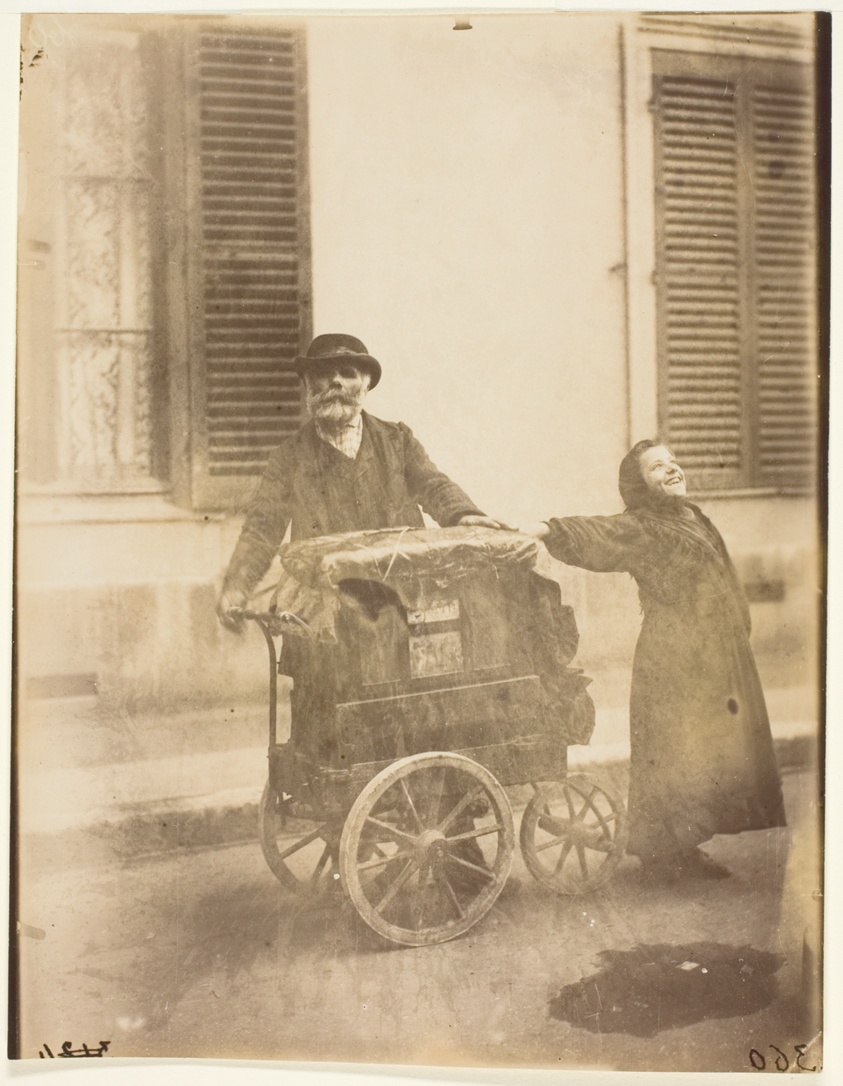 Musical street performance becomes a subject for artistic documentation as Atget elevates everyday urban scenes into compelling photographic compositions that preserve vanishing aspects of Parisian culture.