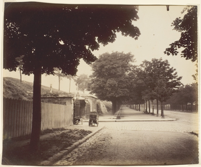 From the photographer's ambitious "Fortifications" series, this stark albumen print documents the industrial transformation of Paris, where ancient city walls give way to modern boulevards.