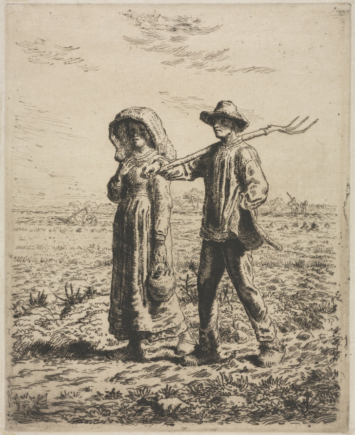 Capturing the daily rhythm of agricultural life, this etching presents the morning journey to the fields as both specific observation and universal symbol of honest labor.
