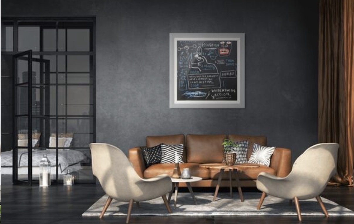 A powerful work from Jean-Michel Basquiat's mature period, "Rinso" exemplifies his signature blend of text, symbols, and raw figuration. The piece critiques racism and consumer culture, referencing the controversial "Amos 'n' Andy" character Kingfish alongside the soap brand Rinso, which historically used racist advertising. The explicit phrase "WHITEWASHING ACTION" underscores the work's potent social commentary, making it a prime example of Basquiat's incisive and historically aware practice.