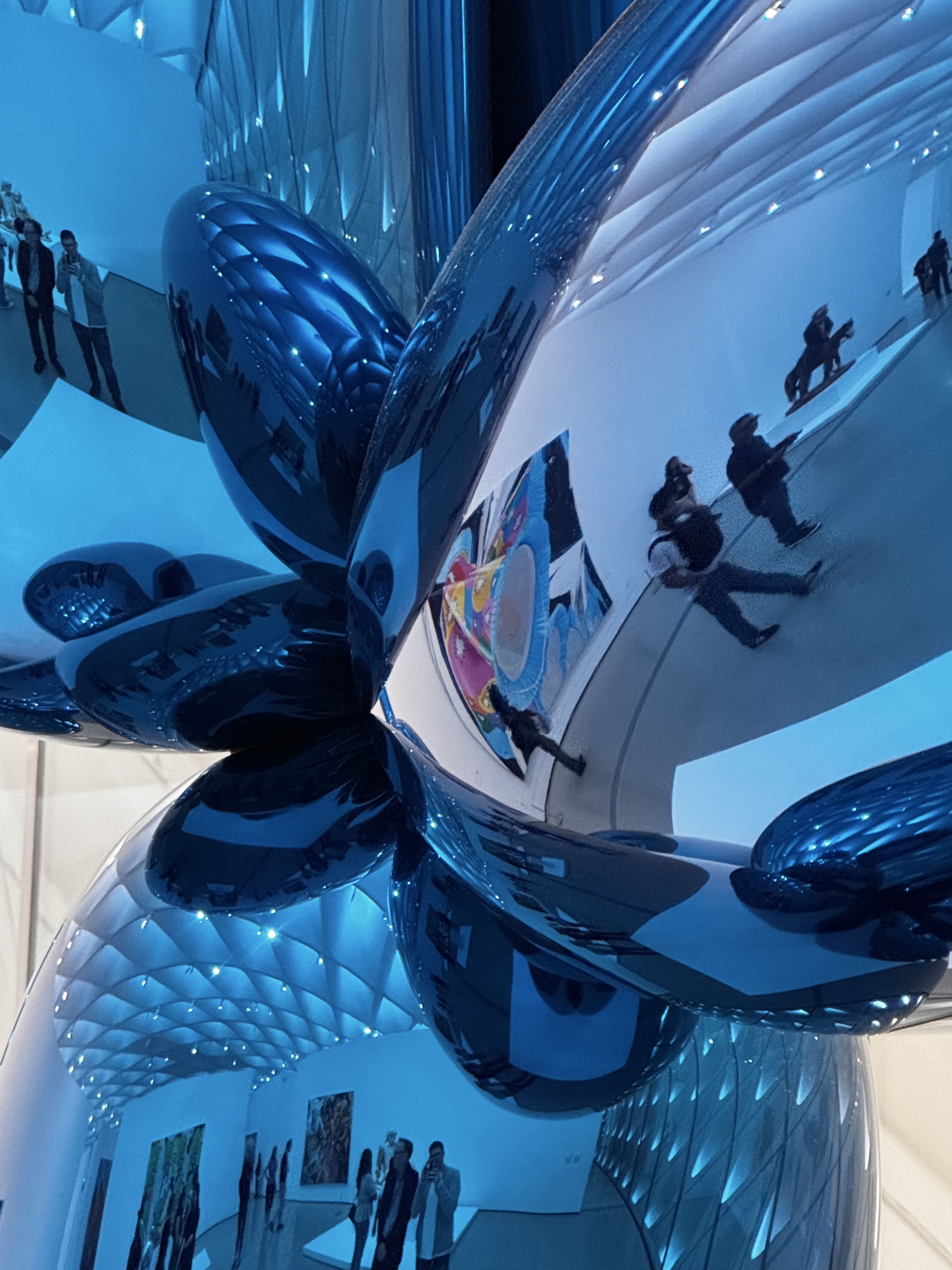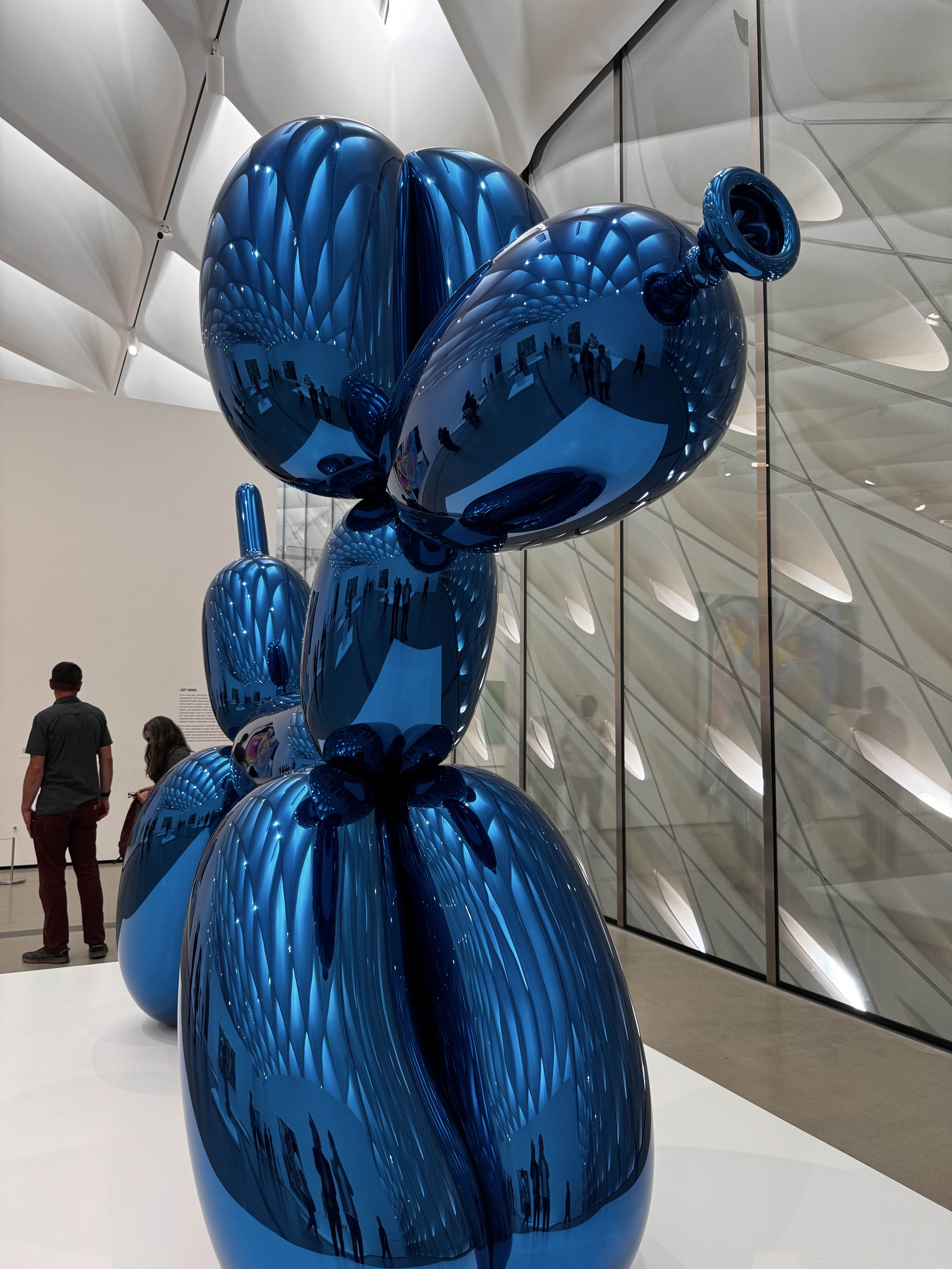 This iconic work is from Jeff Koons's highly sought after Celebration series, which he began in the mid 1990s. Balloon Dog Blue transforms a humble, ephemeral party favor into a monumental and permanent sculpture of immaculate craftsmanship. Its perfect, mirror polished surface reflects its surroundings, making the viewer an integral part of the artwork itself.