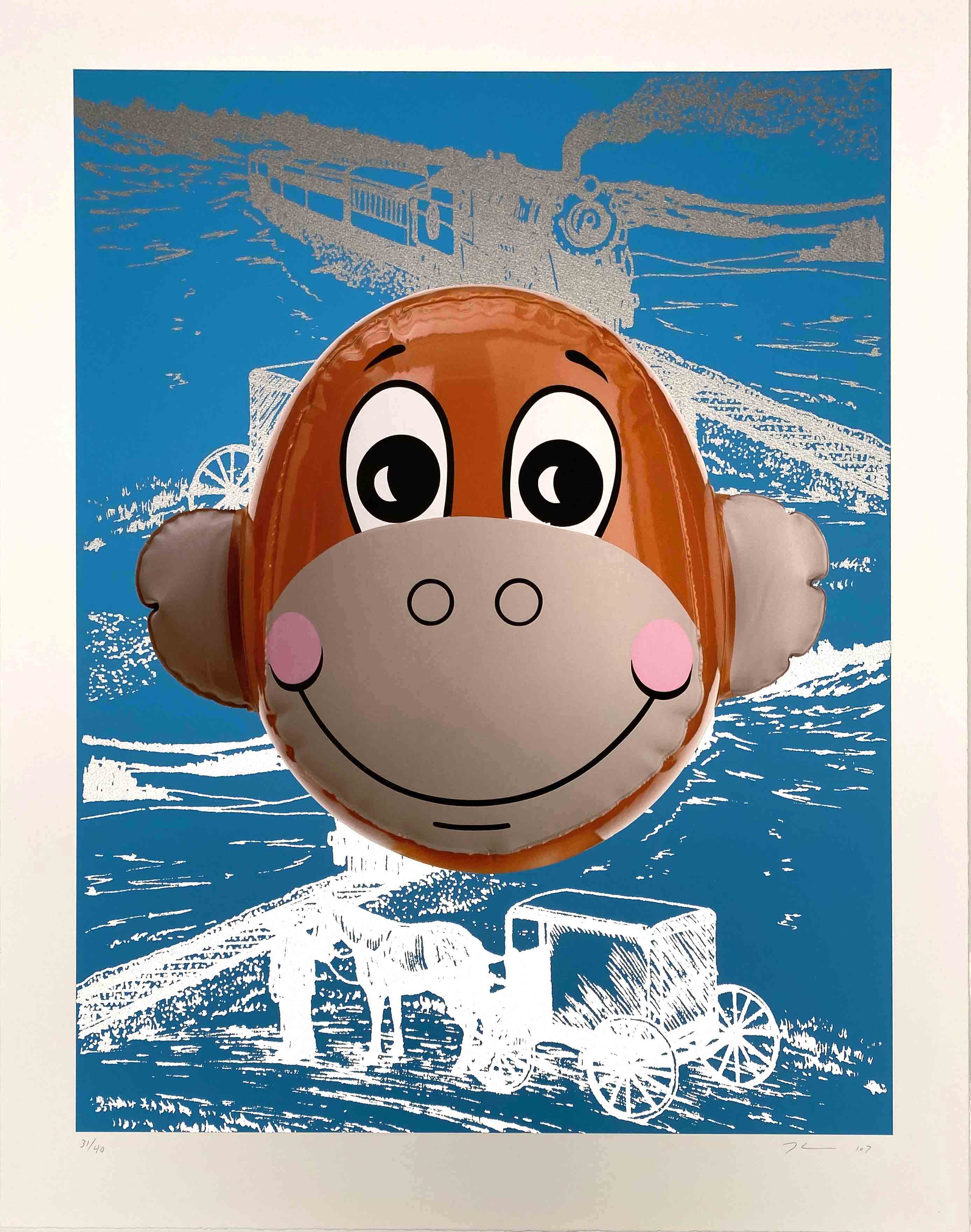 This silkscreen print exemplifies Koons' signature appropriation of childhood imagery, transforming a nostalgic toy train motif through his characteristic high-gloss aesthetic and commercial printing techniques. Part of a limited edition of 40, the work demonstrates the artist's ongoing exploration of consumer culture and manufactured innocence through accessible printmaking media.