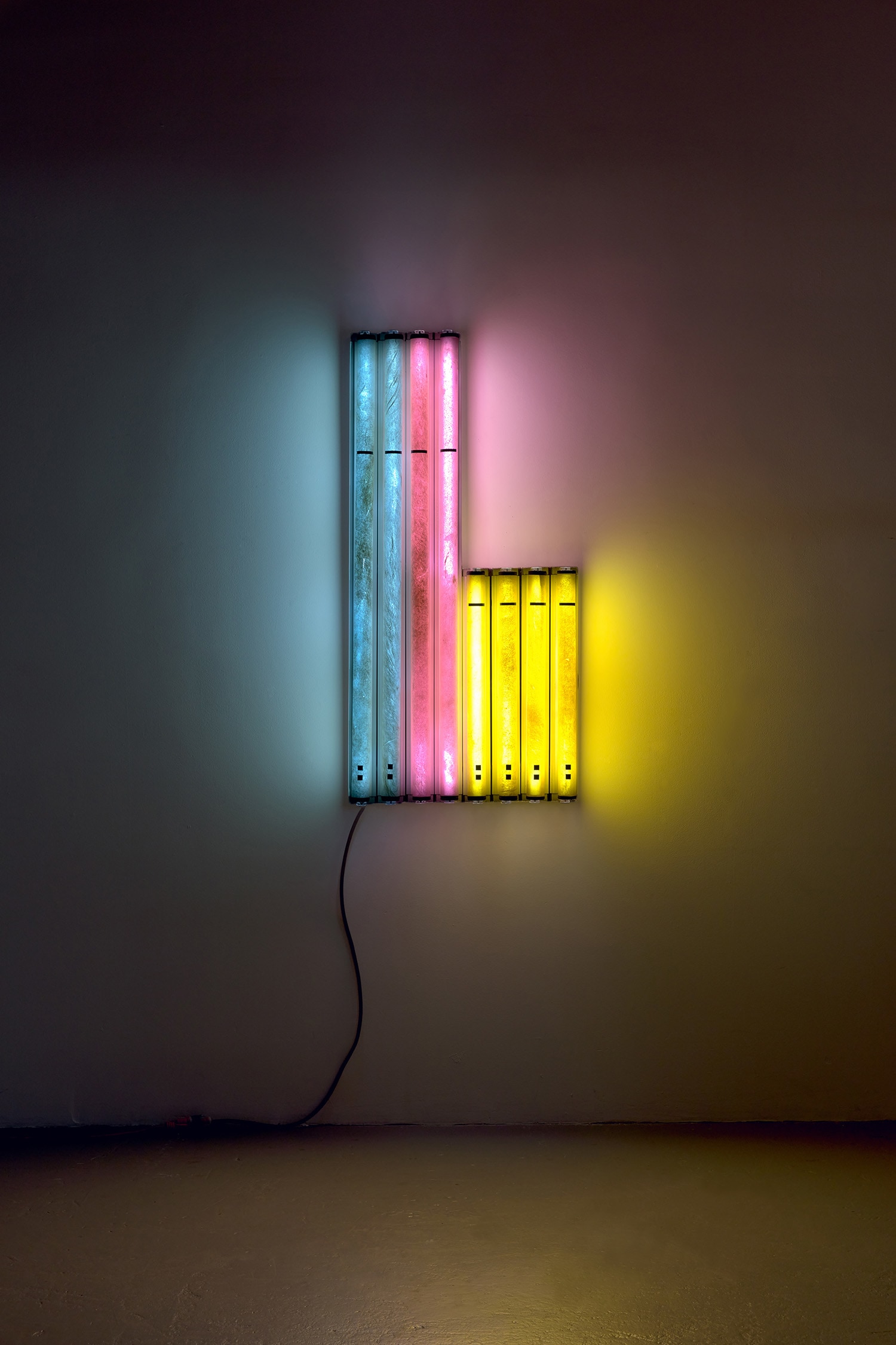 acrylic tube, color gel, deer hide, artificial sinew, acrylic and commercial light fixtures