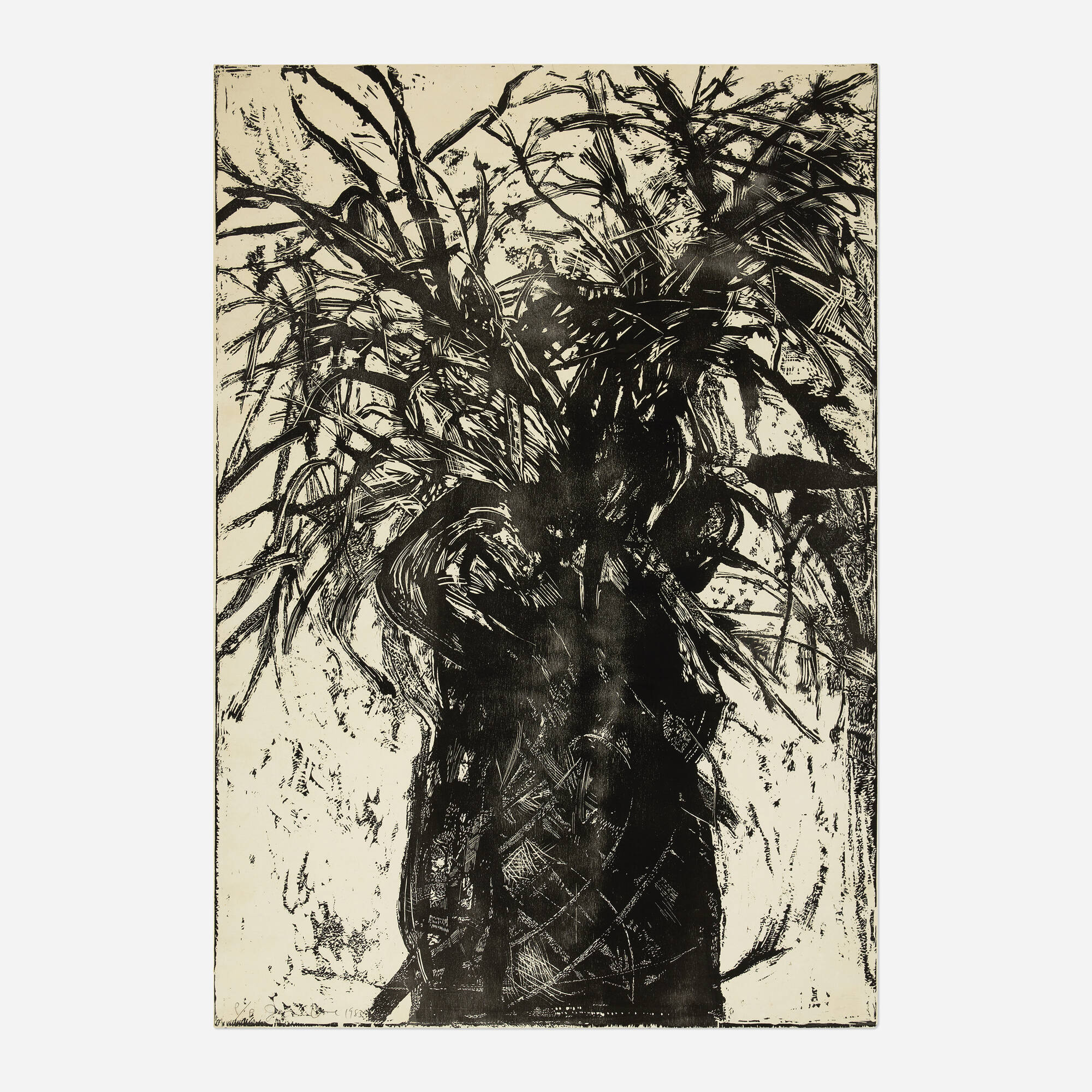 This woodcut represents the left panel of a three part triptych created by Jim Dine in 1983. The work is printed on buff laid paper, showcasing the artist's characteristic gestural approach to the medium. Dine's bold, expressive marks demonstrate his mastery of woodcut techniques. The piece is part of a series titled Three Sydney Close Woodcuts, which references the artist's studio location. This left panel serves as the opening movement in the larger compositional narrative.