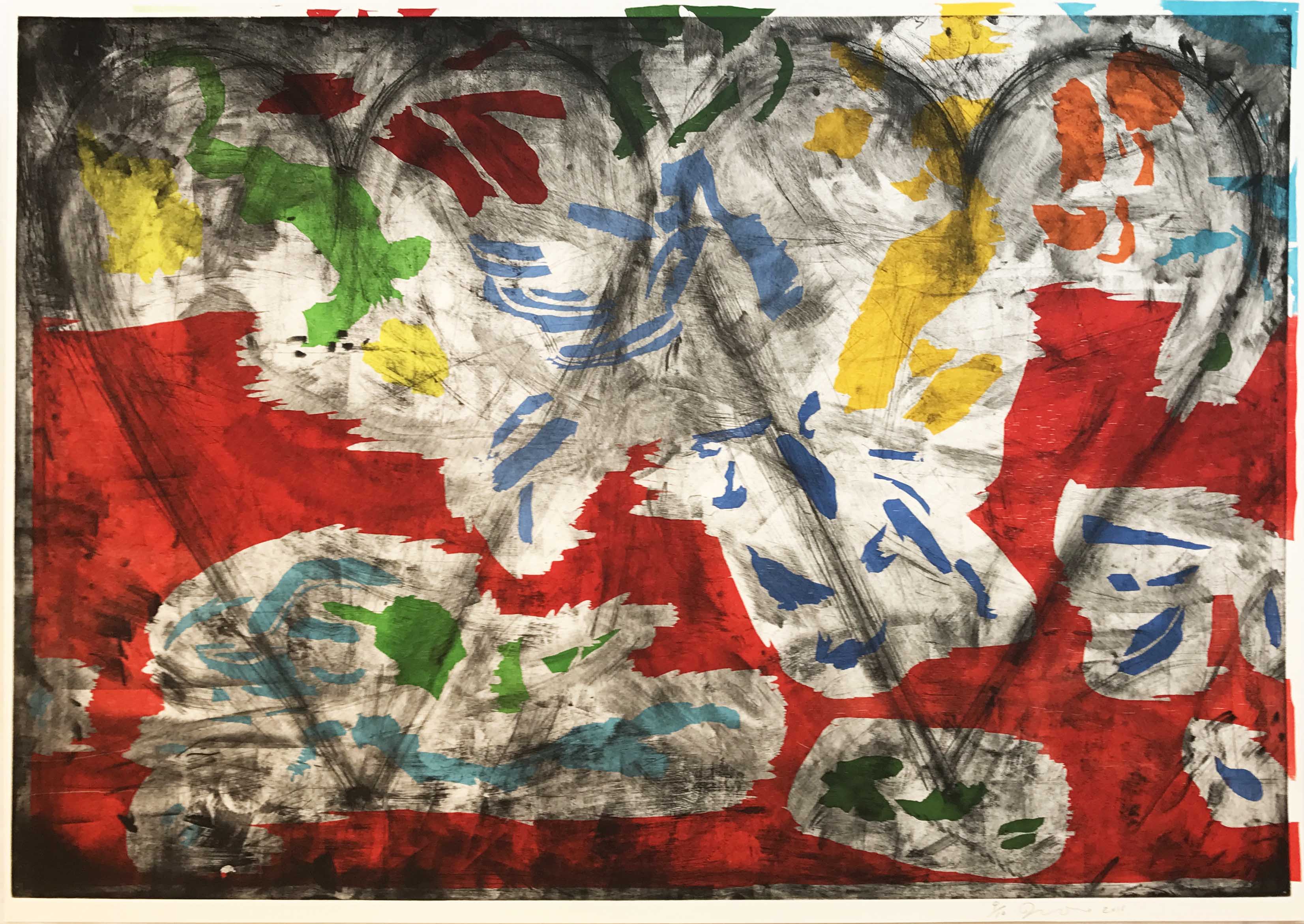 This 2015 work demonstrates Dine's masterful combination of woodcut and copperplate etching techniques, creating rich textural contrasts on Arches Cover White paper. Part of an intimate edition of ten, "Radiant Landscape" showcases the artist's continued exploration of nature imagery through his distinctive printmaking approach that merges bold graphic elements with delicate linear details.