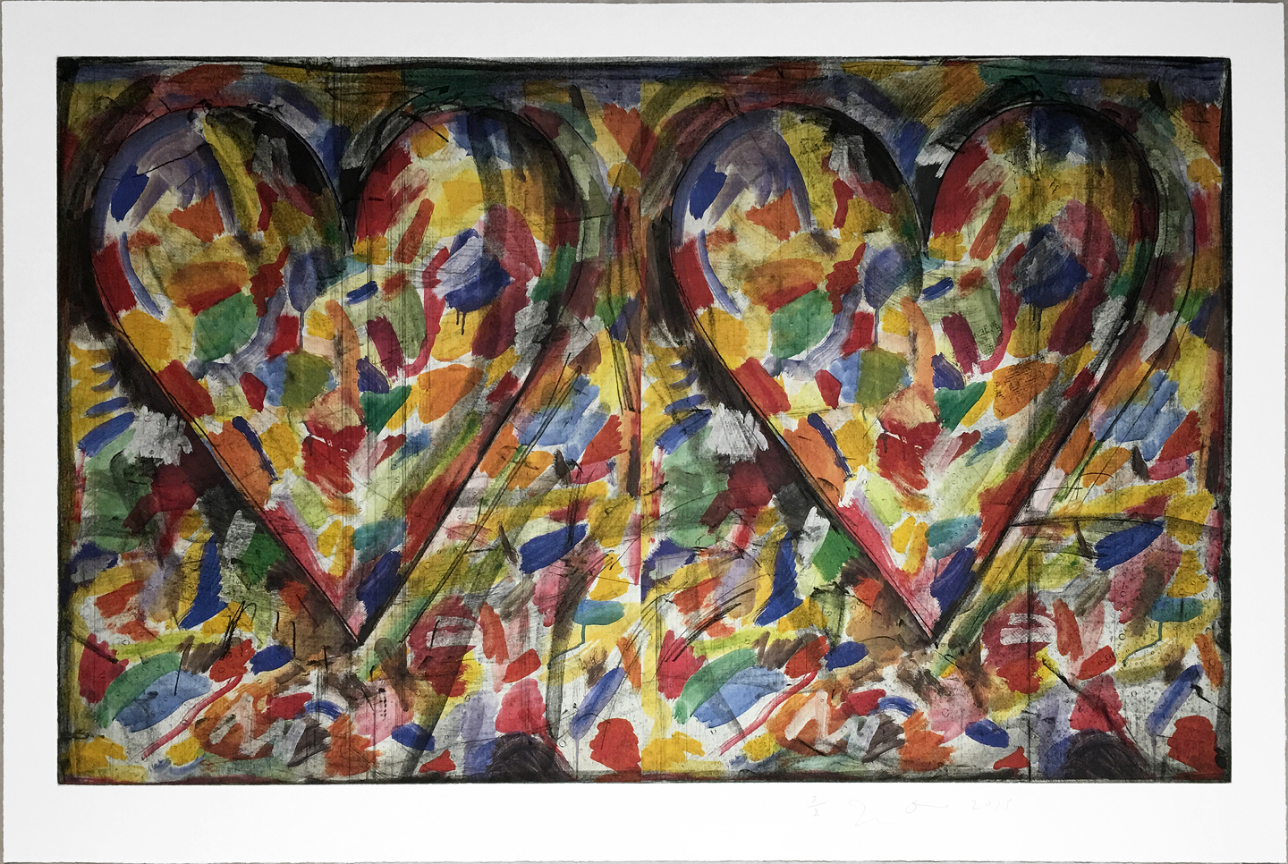 This intimate 2015 work combines Dine's mastery of printmaking techniques, layering the precise lines of soft ground etching with the bold graphic qualities of offset lithography. Part of a highly limited edition of seven, "Years Ago" exemplifies the artist's continued exploration of memory and time through his characteristic synthesis of traditional and contemporary print methods.