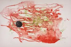 This 1961 lithograph by Joan Miró exemplifies the artist's mature abstract vocabulary, with gestural red washes and organic forms characteristic of his post-war practice. As a hors commerce impression, this print represents a privileged variant outside the edition of 30, printed on quality BFK Rives paper with generous margins that enhance the work's contemplative composition. The work demonstrates Miró's continued experimentation with color lithography, a medium through which he translated his spontaneous, biomorphic imagery into refined printmaking editions.