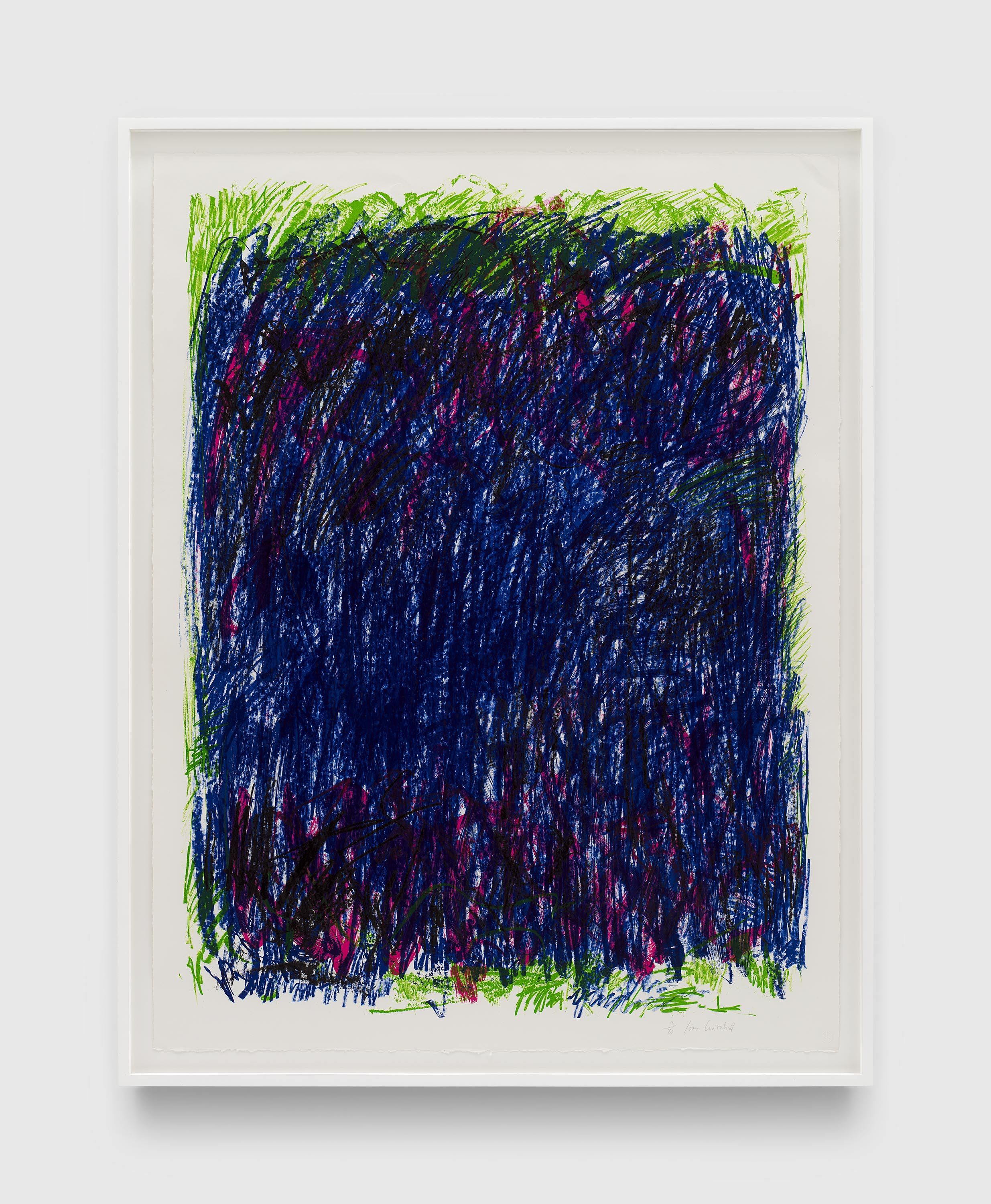 An abstract lithograph with bold brushstroke-like marks and expressive composition. This work from Mitchell's Bedford series demonstrates her characteristic Abstract Expressionist approach.