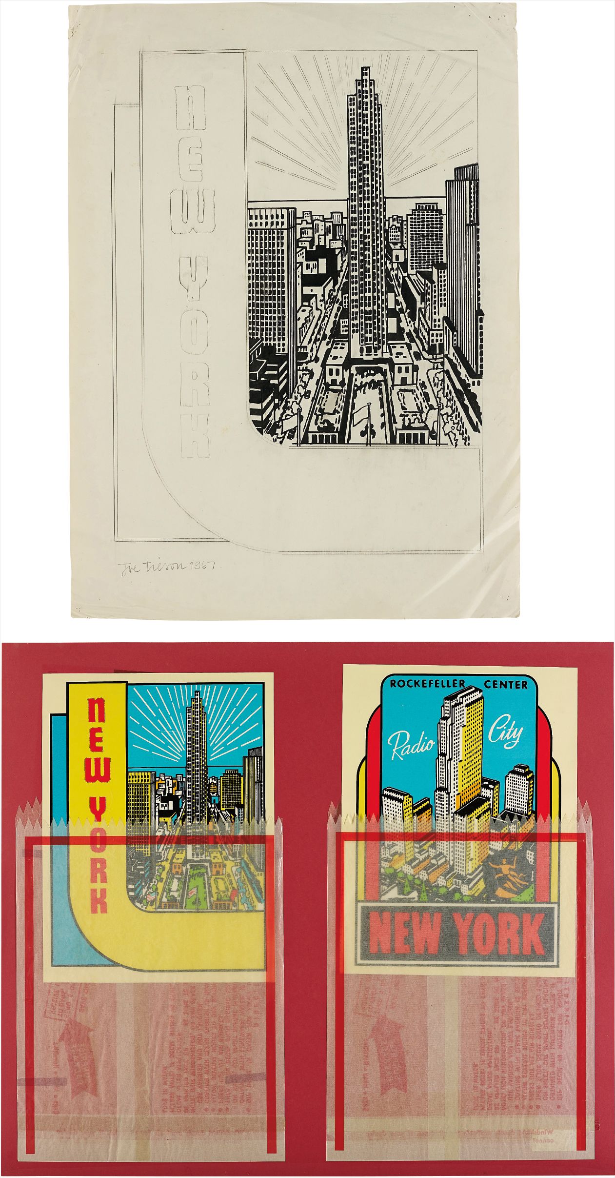 - The set of two screenprints in colours, on wove paper, with wax-paper collage, the full sheets, together with a preliminary study for