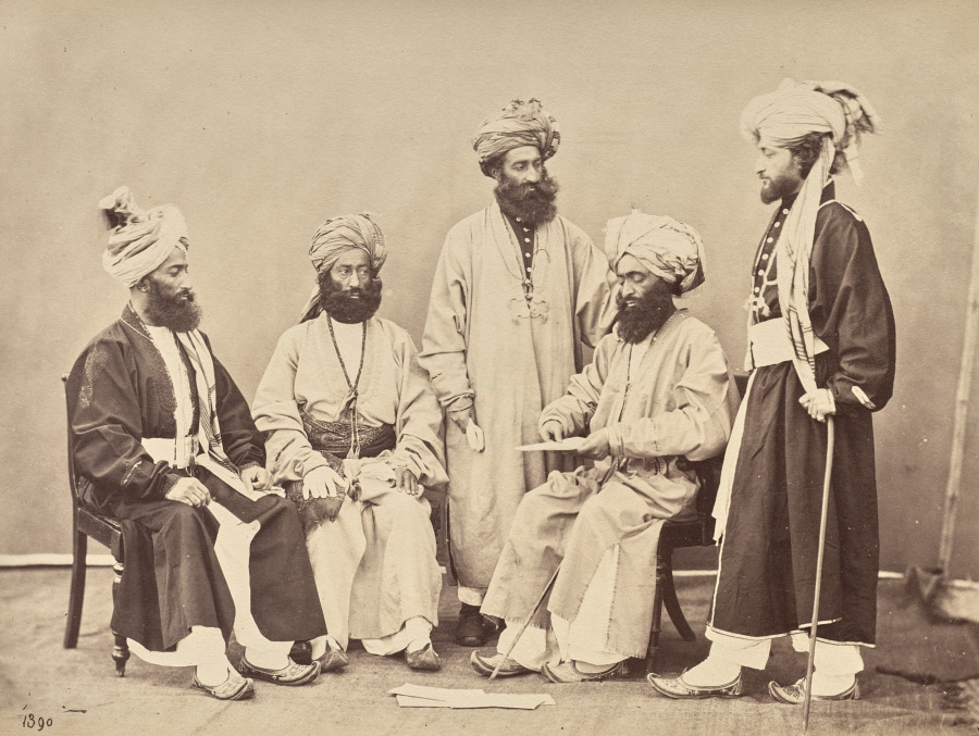 Local inhabitants are portrayed with dignified formality in Burke's ethnographic approach, reflecting Victorian interest in documenting the peoples of the Empire.