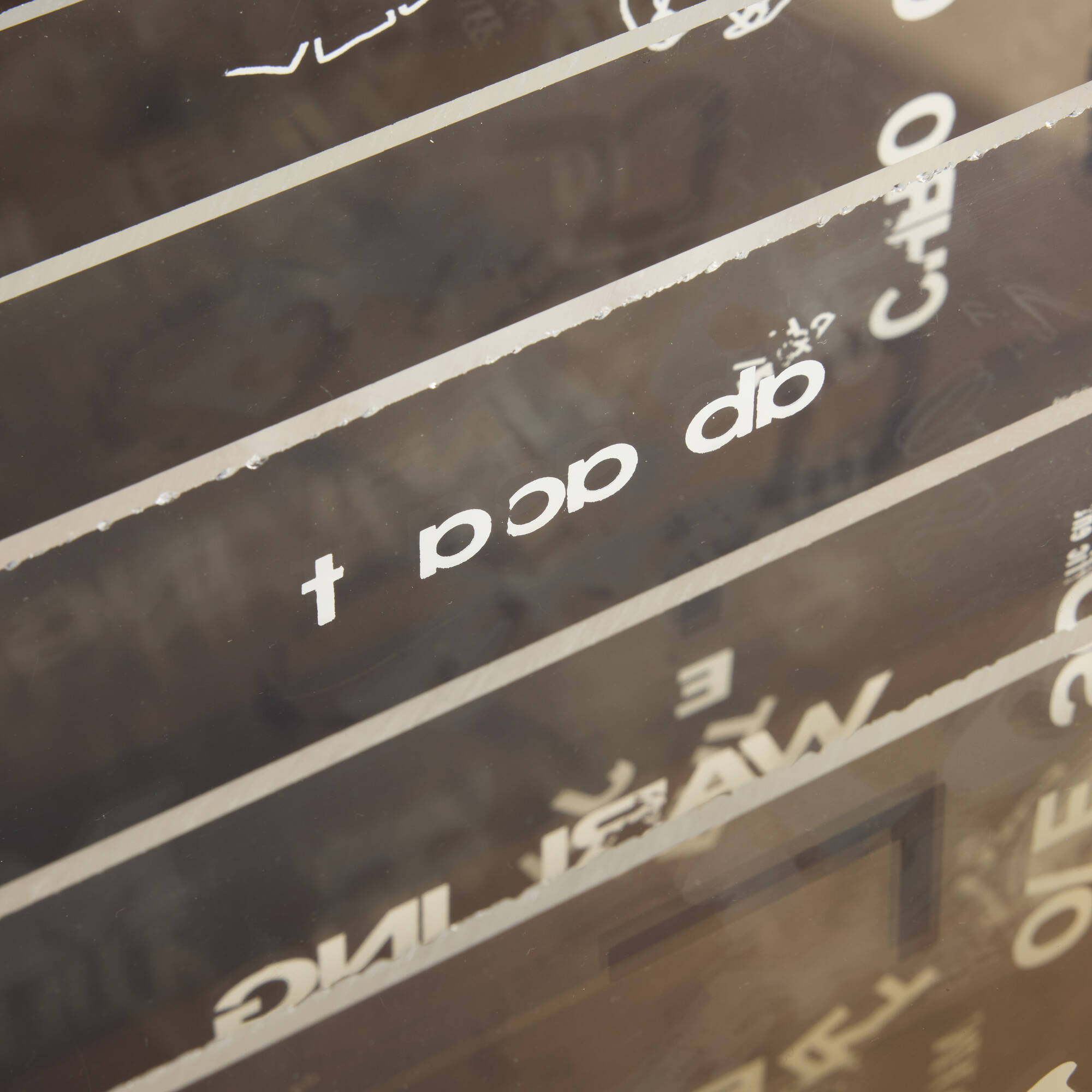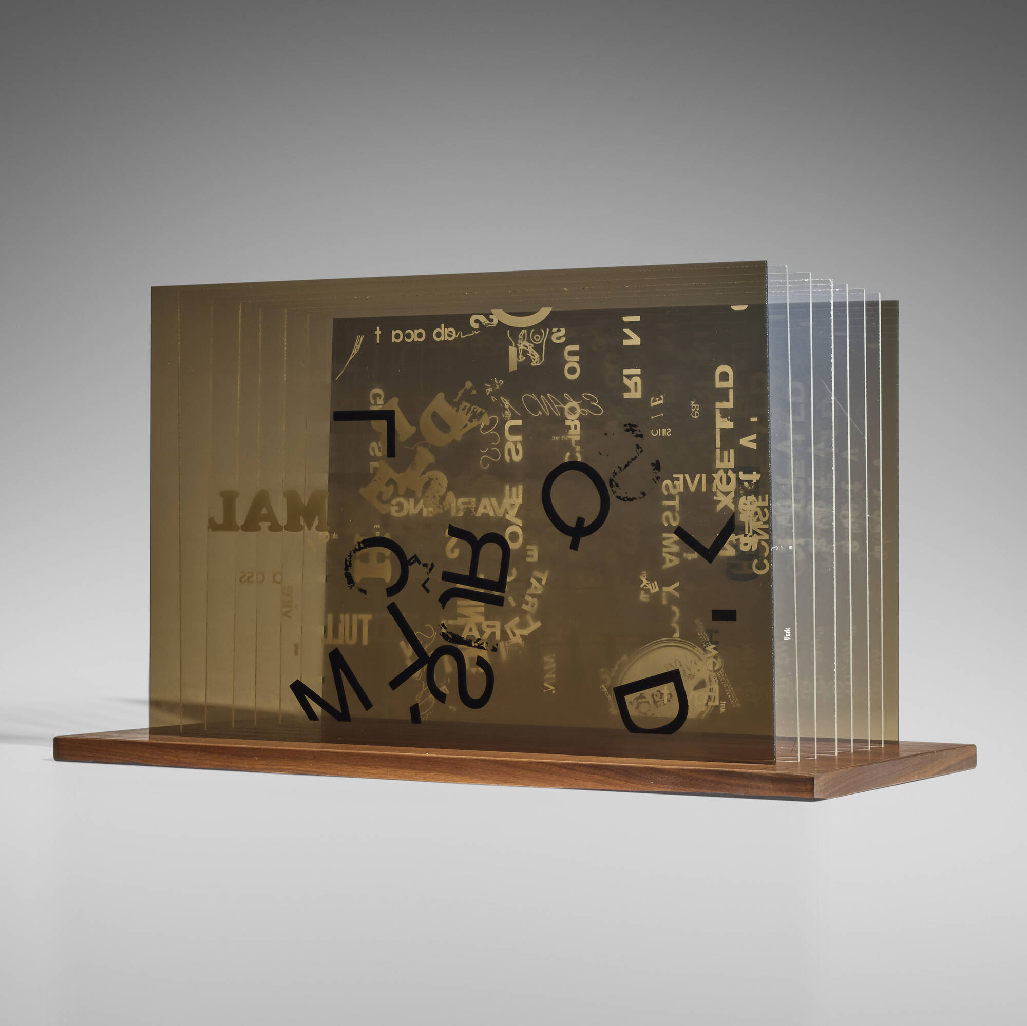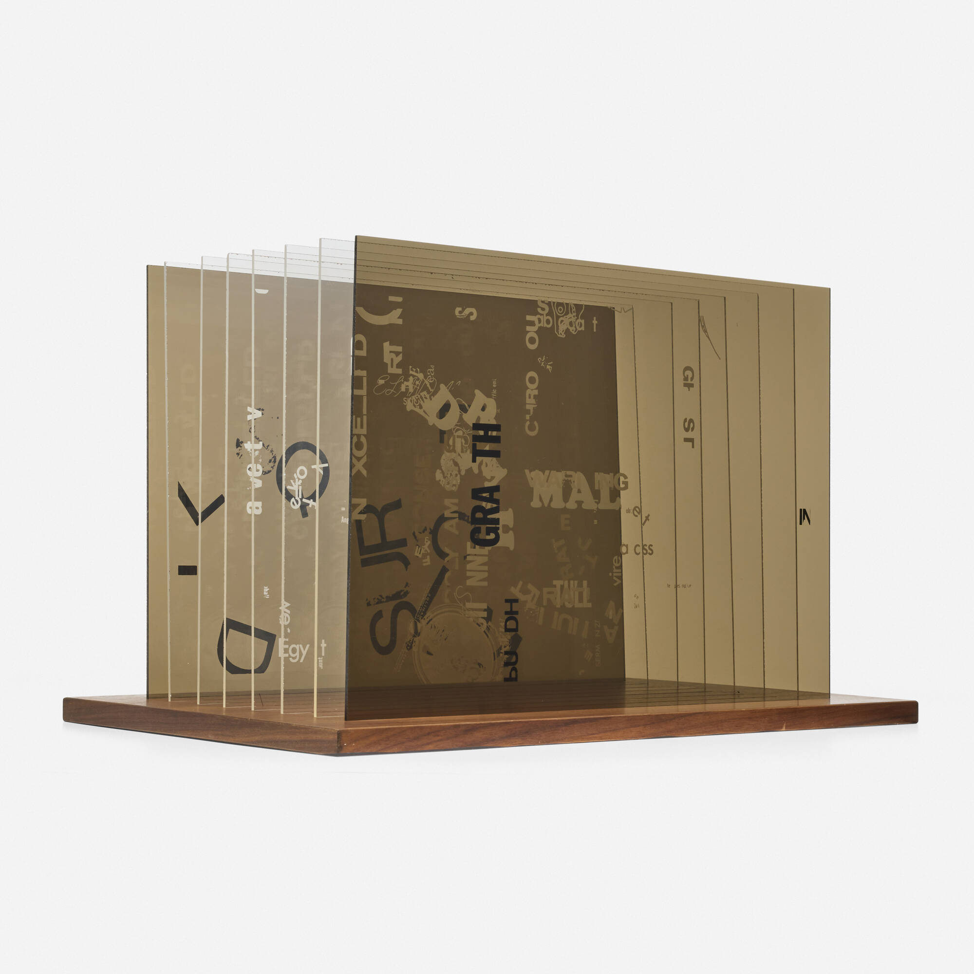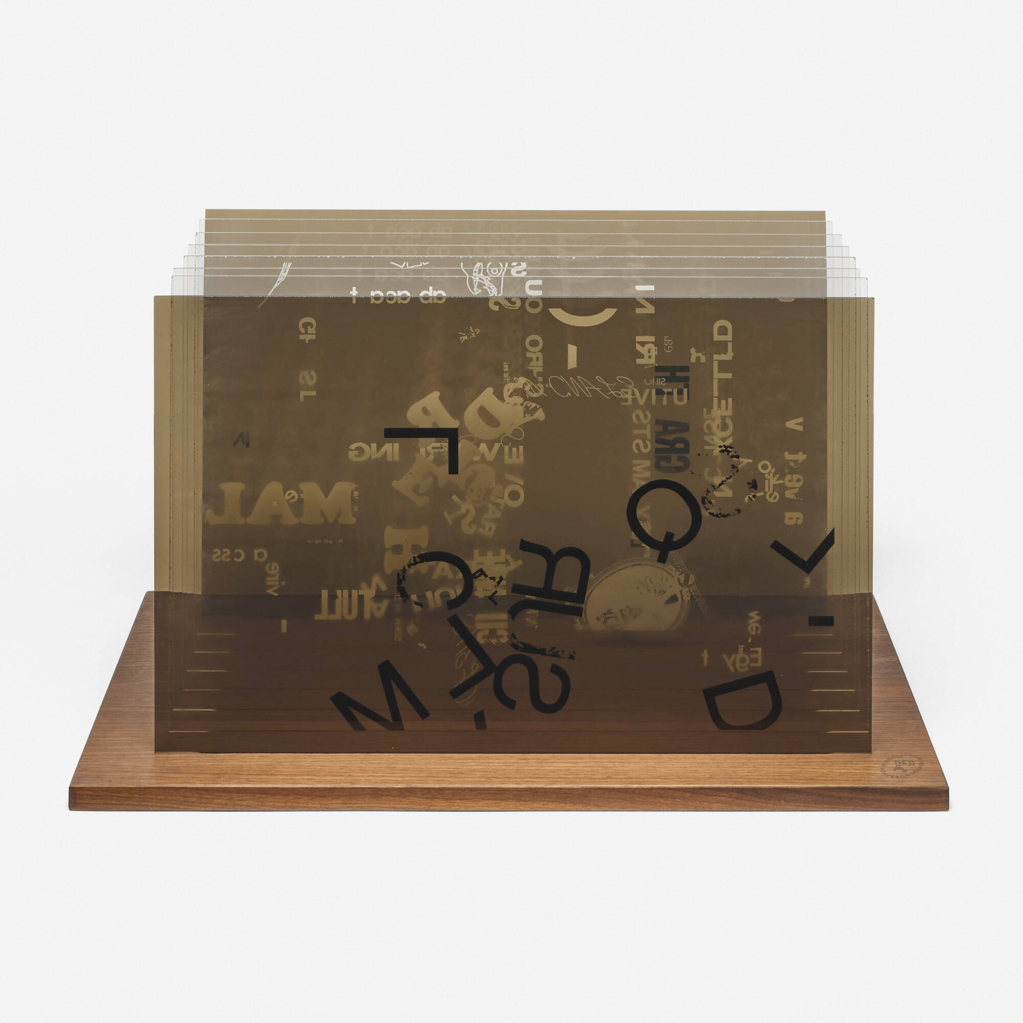 - screenprint in colors on Plexiglas, walnut