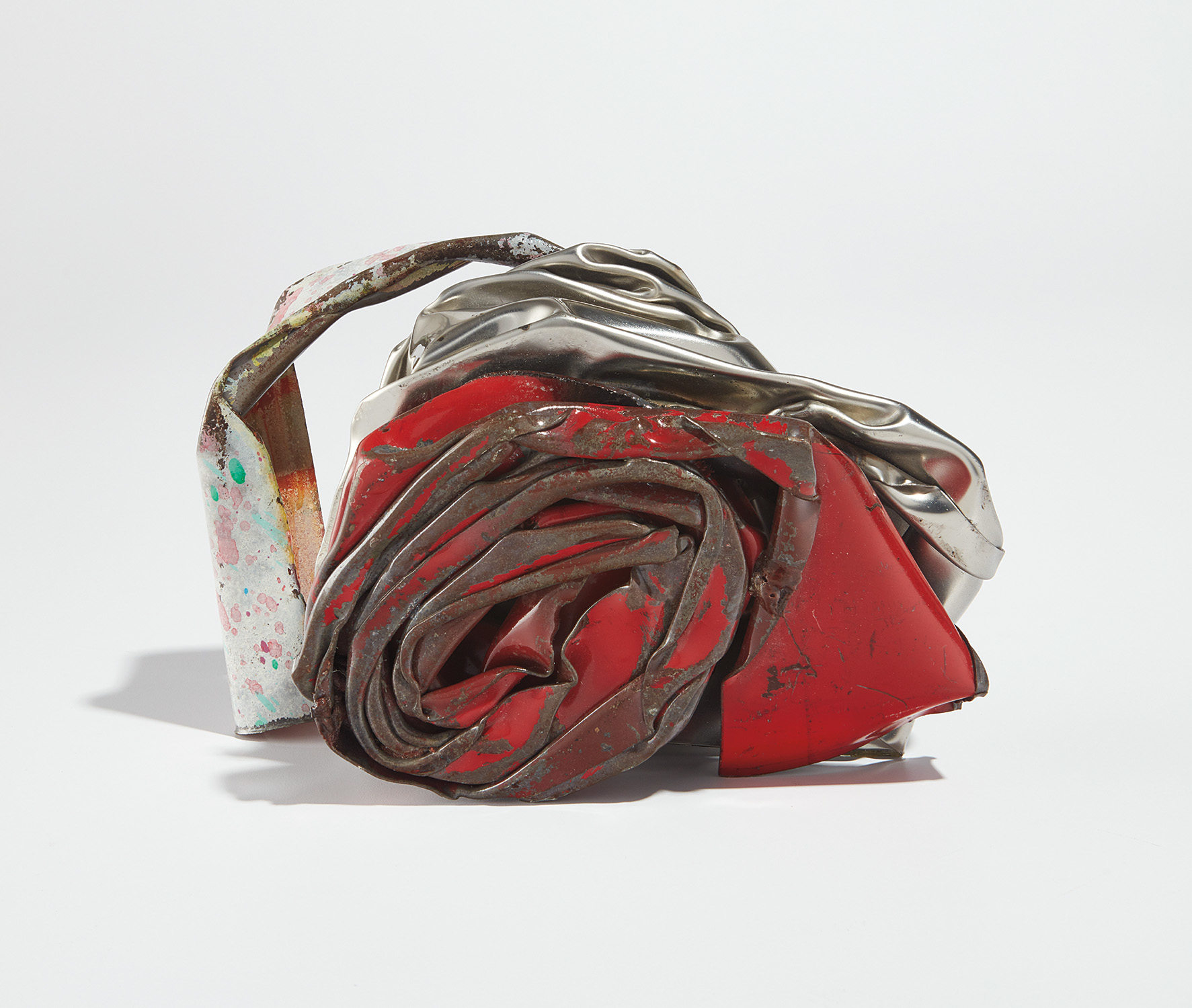 A painted stainless steel sculpture from 1990 that demonstrates Chamberlain's continued refinement of his sculptural language. The work showcases his ability to create compelling abstract forms through the manipulation of metal.