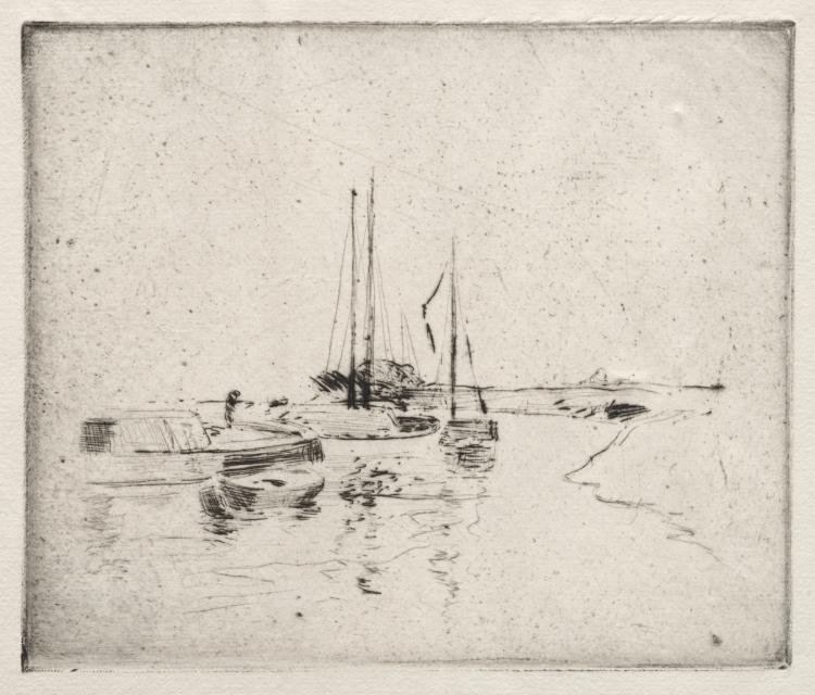 Capturing the quiet poetry of Dutch waterways, the composition demonstrates Twachtman's skill at creating intimate, contemplative scenes from everyday maritime subjects.