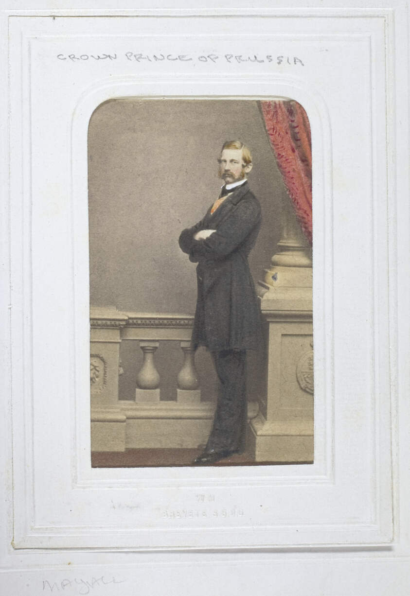 With subtle hand-applied coloring, the portrait of the future German Emperor shows Mayall's international reach and his role in documenting the interconnected European royal families of the Victorian age.