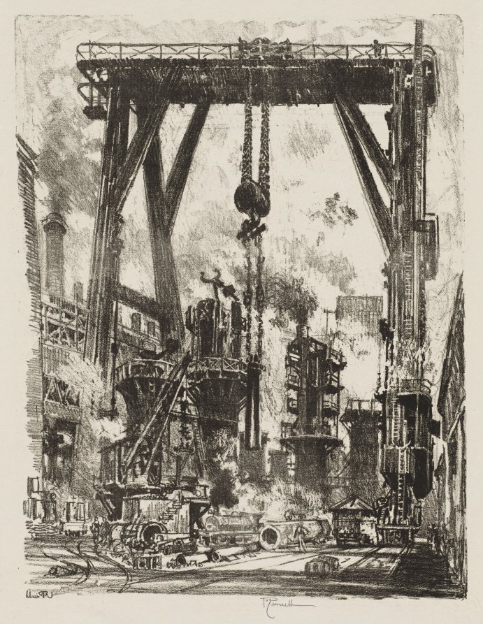 Weathered fortifications rendered with masterful lithographic technique speak to both military history and the artist's interest in architectural decay and renewal.