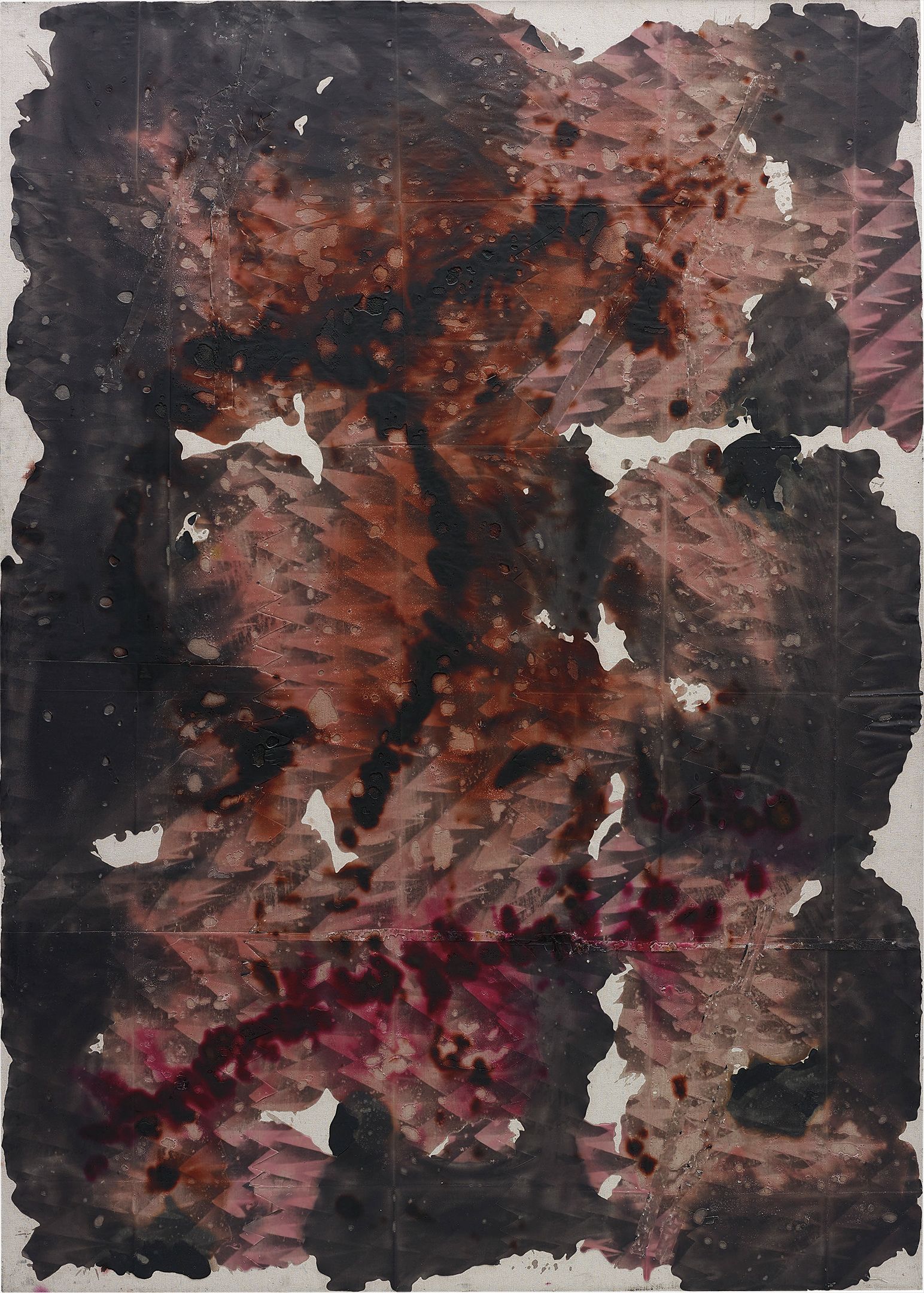 A haunting interplay of wax and ink creates layered, muted passages across the canvas, evoking the strange silence of a space engineered to absorb all sound. Jpw3's *P Anechoic* explores the visual language of absence, where translucent wax veils pools of ink in a tension between concealment and revelation. The work invites a meditative stillness, as if the surface itself has swallowed the noise of the world around it.