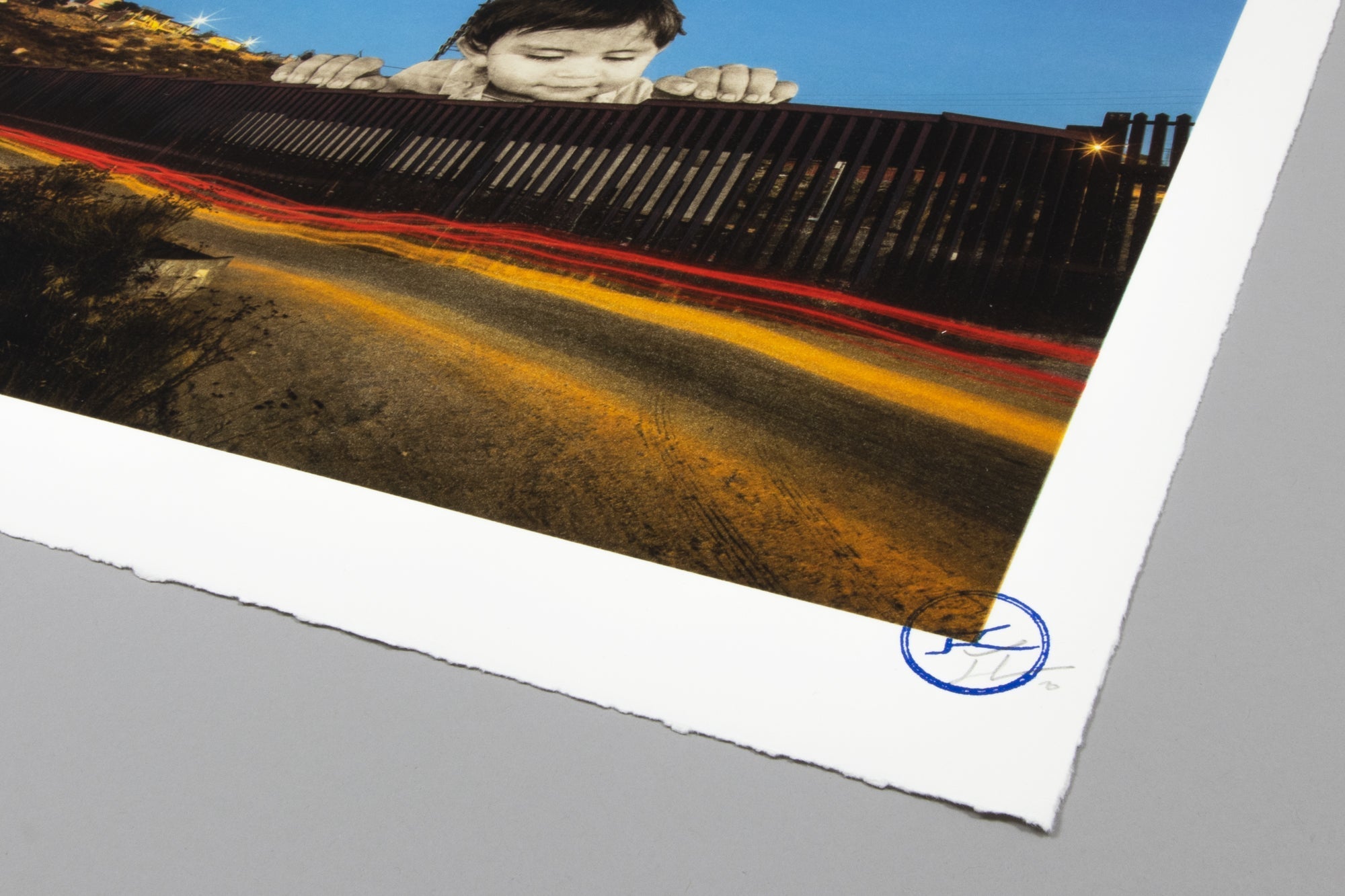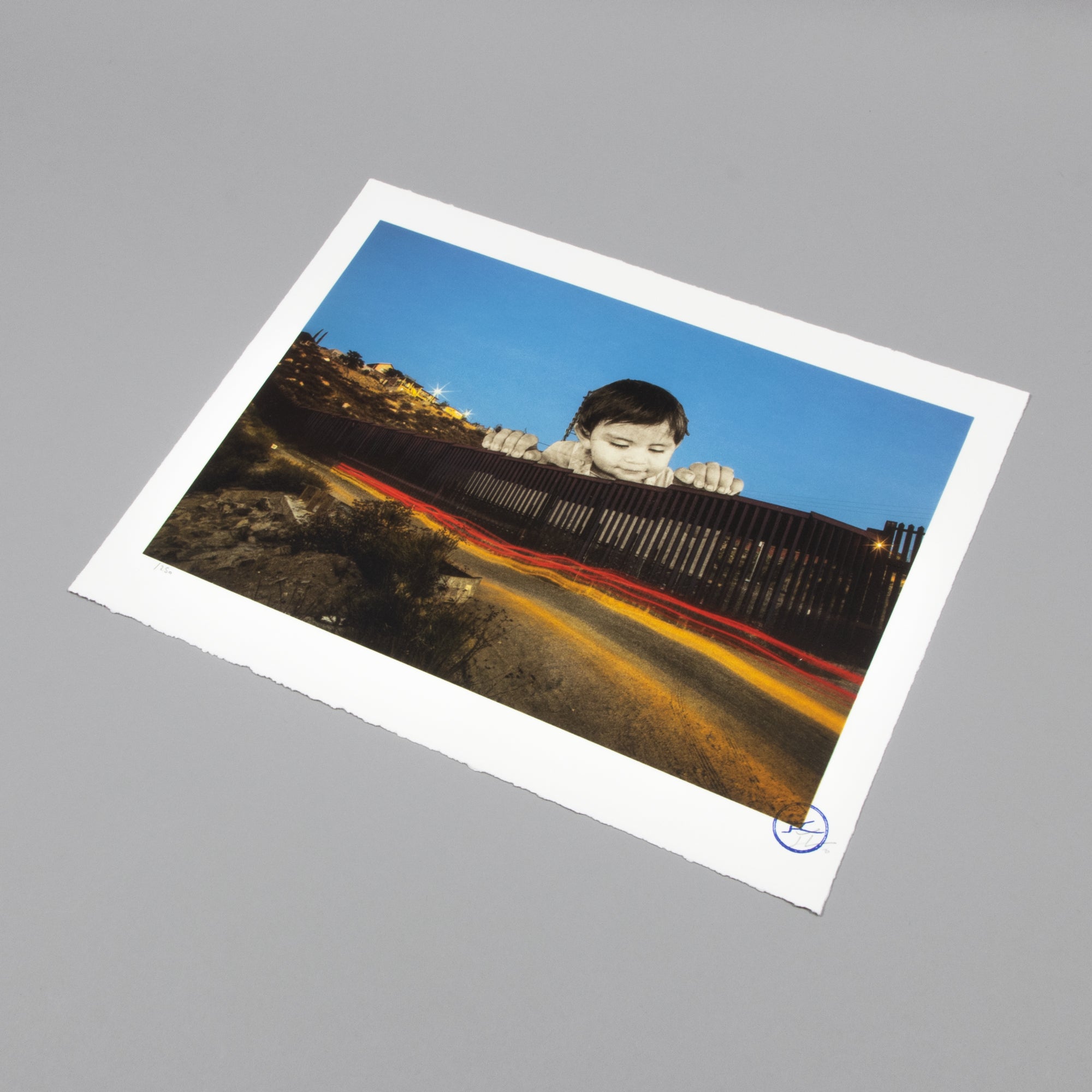 JR (French, born 1983) Giants, Kikito, September 6, 2017, 7.27 P.M., Tecate, Mexico – U.S.A., 2017 , 2020 Medium: Lithograph in colors, on BFK Rives Dimensions: 36 × 46 cm (14 1/5 × 18 1/10 in) Edition of 250: Hand-signed and numbered Condition: Mint
