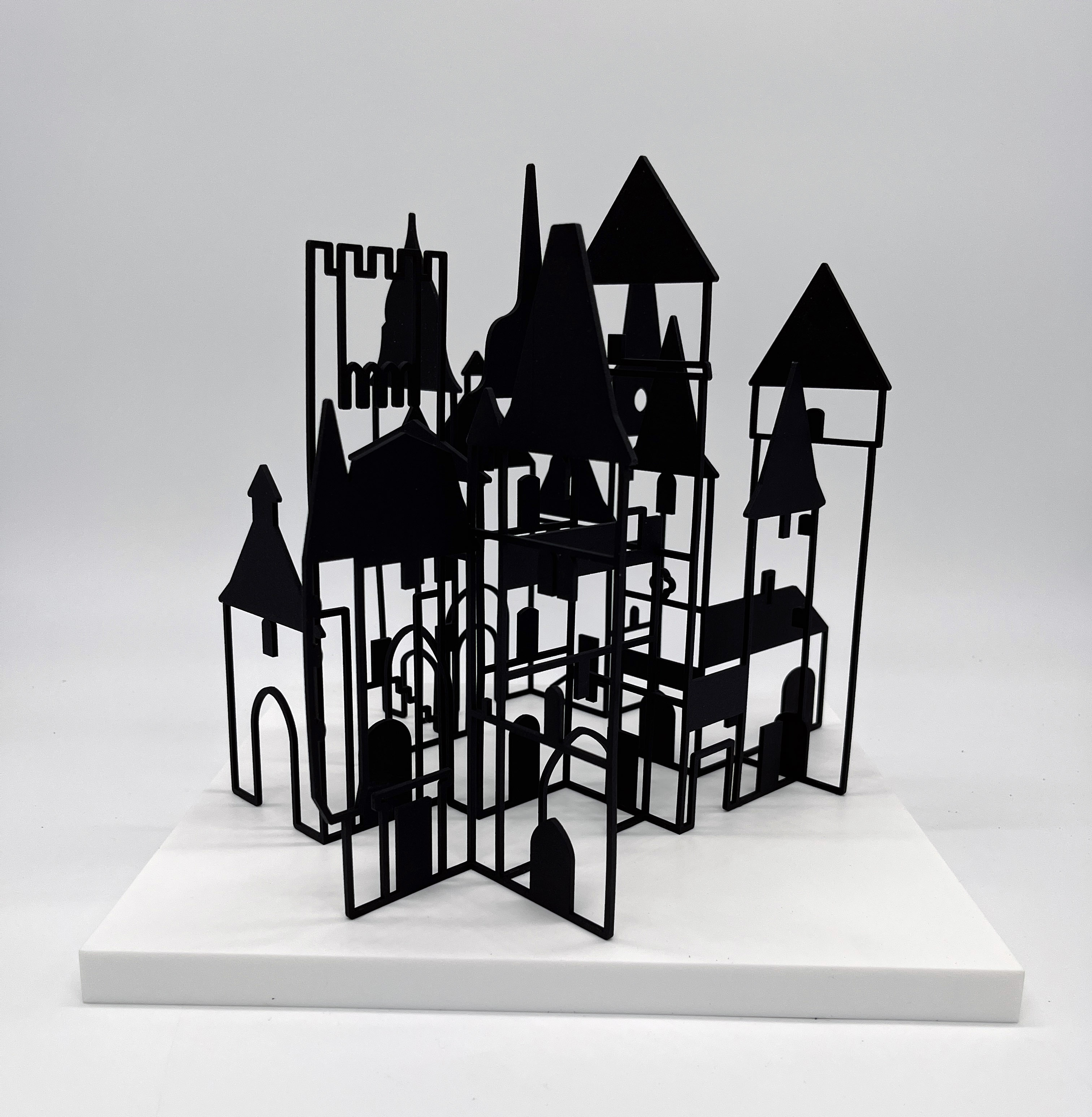 This 3D printed sculpture exemplifies Opie's continued exploration of architectural forms through his signature reductive aesthetic, translating the geometric simplicity of rural French bastide buildings into a minimalist sculptural language. The work demonstrates the artist's embrace of digital fabrication technologies while maintaining his characteristic bold, simplified visual vocabulary.