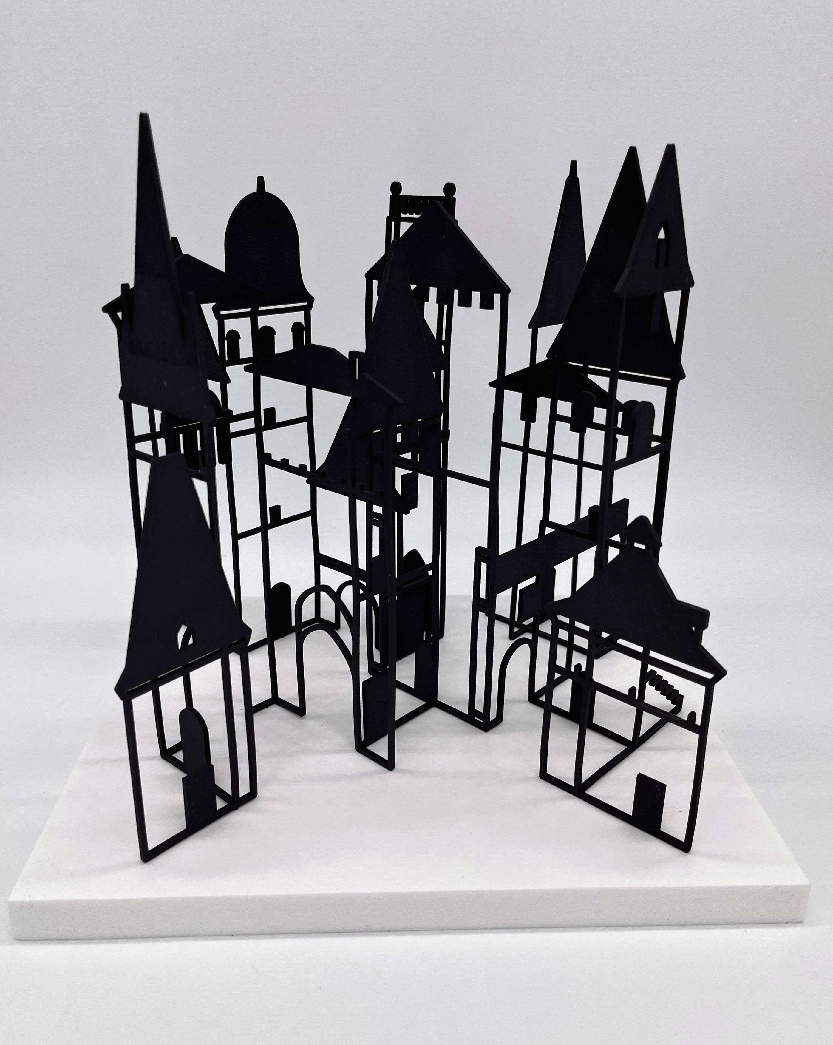 This 3D printed sculpture exemplifies Opie's distinctive minimalist aesthetic applied to architectural subject matter, reducing a traditional French country house to its essential geometric forms. The work demonstrates the artist's ongoing exploration of digital fabrication techniques while maintaining his characteristic approach to simplifying complex visual information into clean, recognizable silhouettes.