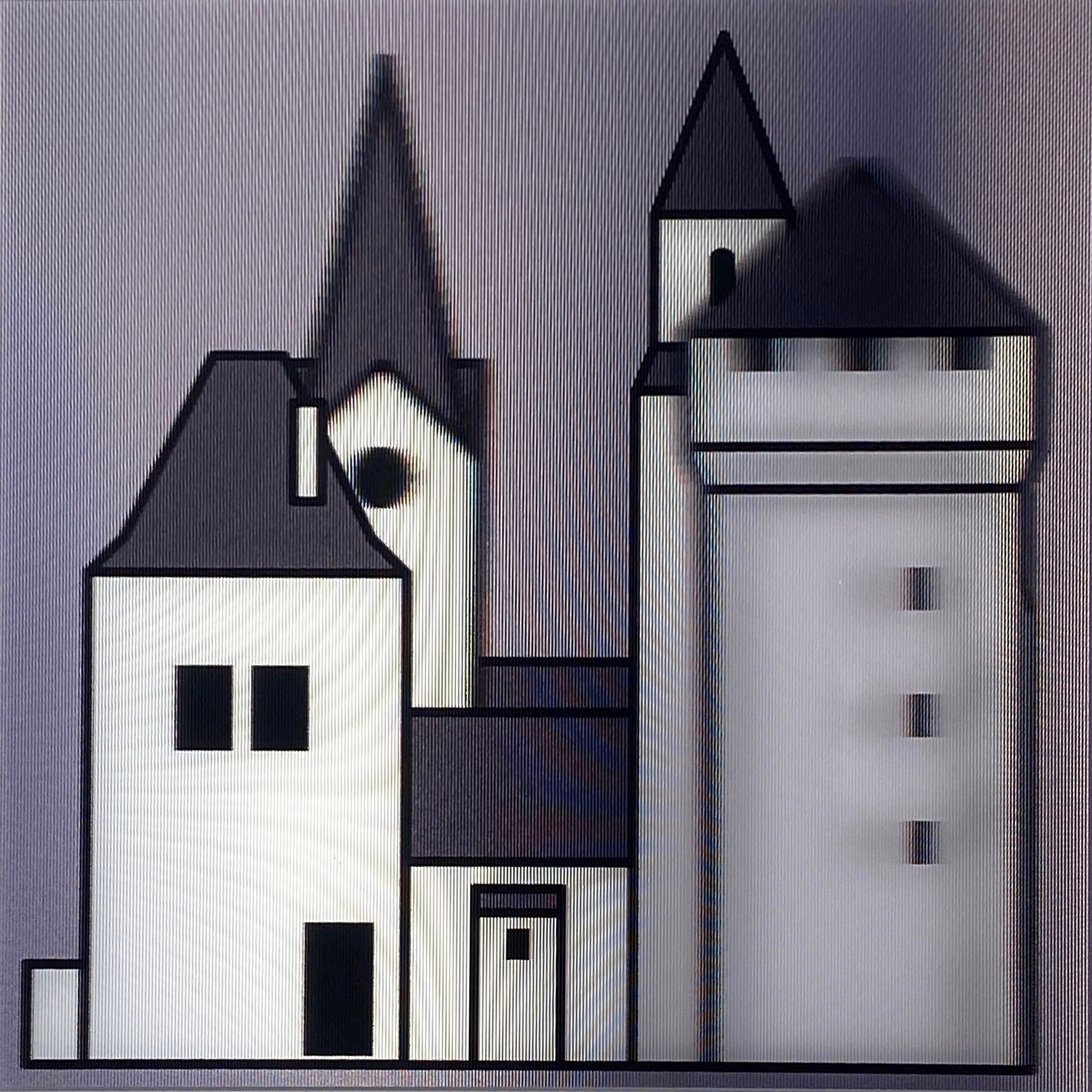 In this 2019 lenticular work, Opie applies his signature reductive visual language to historical architecture, transforming medieval structures into boldly simplified forms that shift and animate as the viewer moves. The innovative use of lenticular technology creates dynamic visual movement within Opie's characteristically minimal aesthetic, bridging traditional subject matter with contemporary digital techniques.