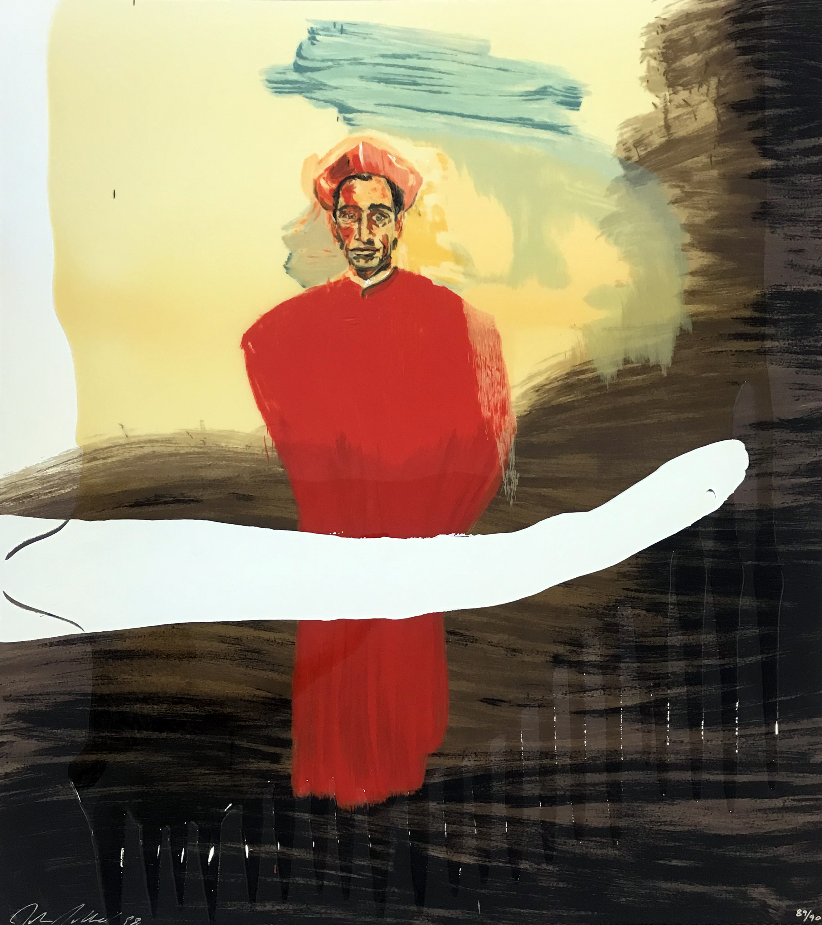 This 21-color screenprint exemplifies Schnabel's characteristic fusion of printmaking with sculptural elements through the application of poured resin, creating a textured surface that bridges his painted works and graphic output. The piece demonstrates his ongoing dialogue with literary and cultural figures, invoking the French Romantic writer while employing his signature material experimentation.