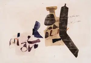 Julius Bissier's "Untitled (Abstract Composition)" from 1962 exemplifies the artist's refined approach to abstraction through its delicate interplay of egg tempera and oil on linen, creating subtle tonal variations across an intimate scale. The work's modest dimensions and careful inscriptions suggest a meditative practice, characteristic of Bissier's exploration of minimalist forms and gestural mark making. Acquired from the prestigious Lefebvre Gallery in New York during 1969, this composition reflects the artist's commitment to exploring the expressive possibilities of restrained color and composition in post war European abstraction.
