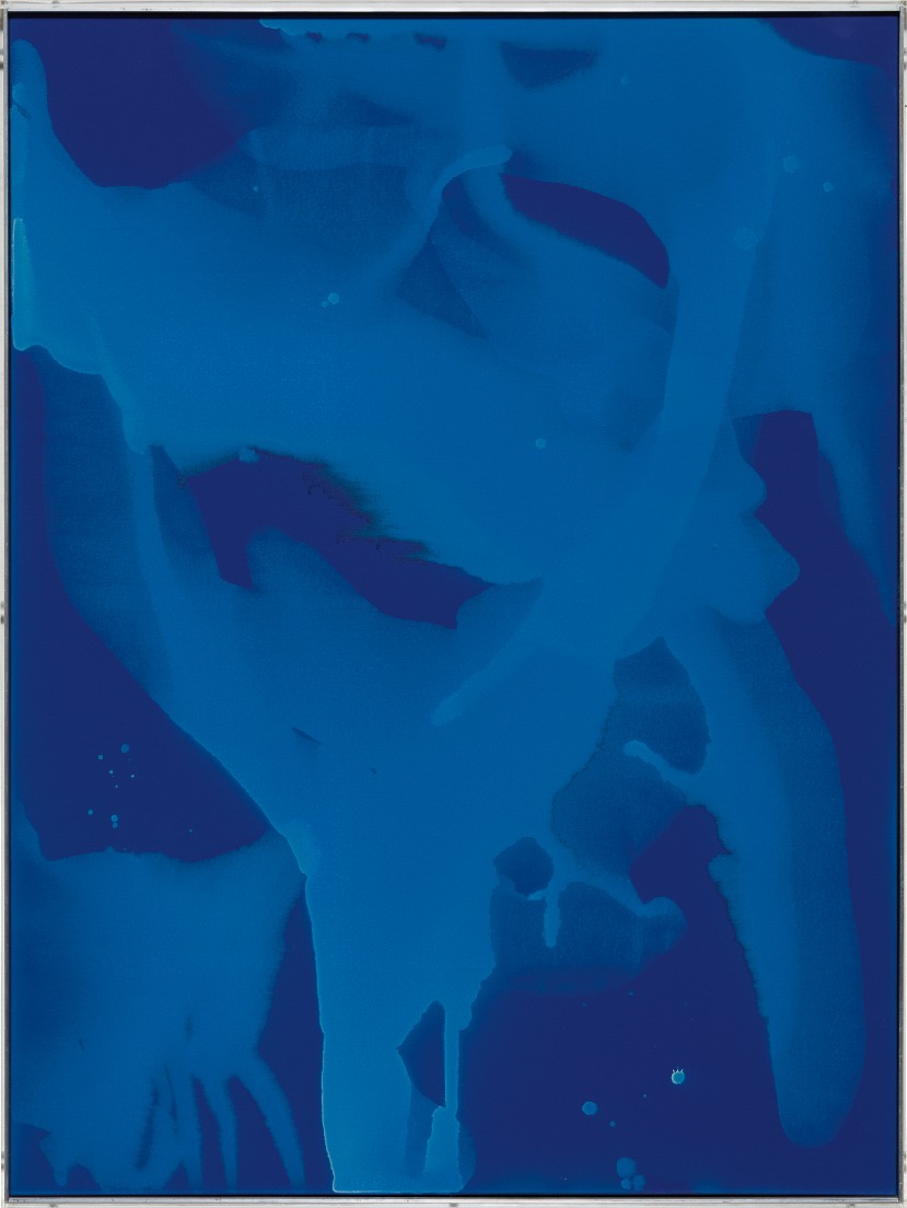- industrial paint and chemicals on canvas, in artist's aluminum frame