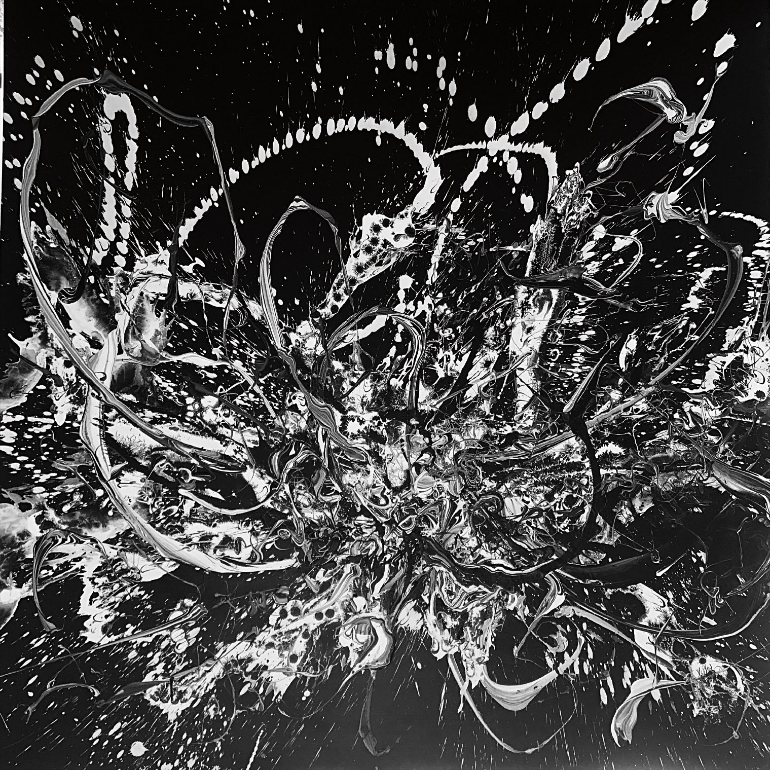 A dynamic explosion of fluid motion, Gene & Ethics by Katrin Fridriks pulses with sweeping arcs and bold splatters of acrylic paint across the canvas. The work channels the artist's signature high-velocity technique, where organic forms collide with precision to evoke the tension between the natural and the constructed. Rich contrasts of color and texture invite reflection on the complex relationship between scientific progress and moral responsibility.