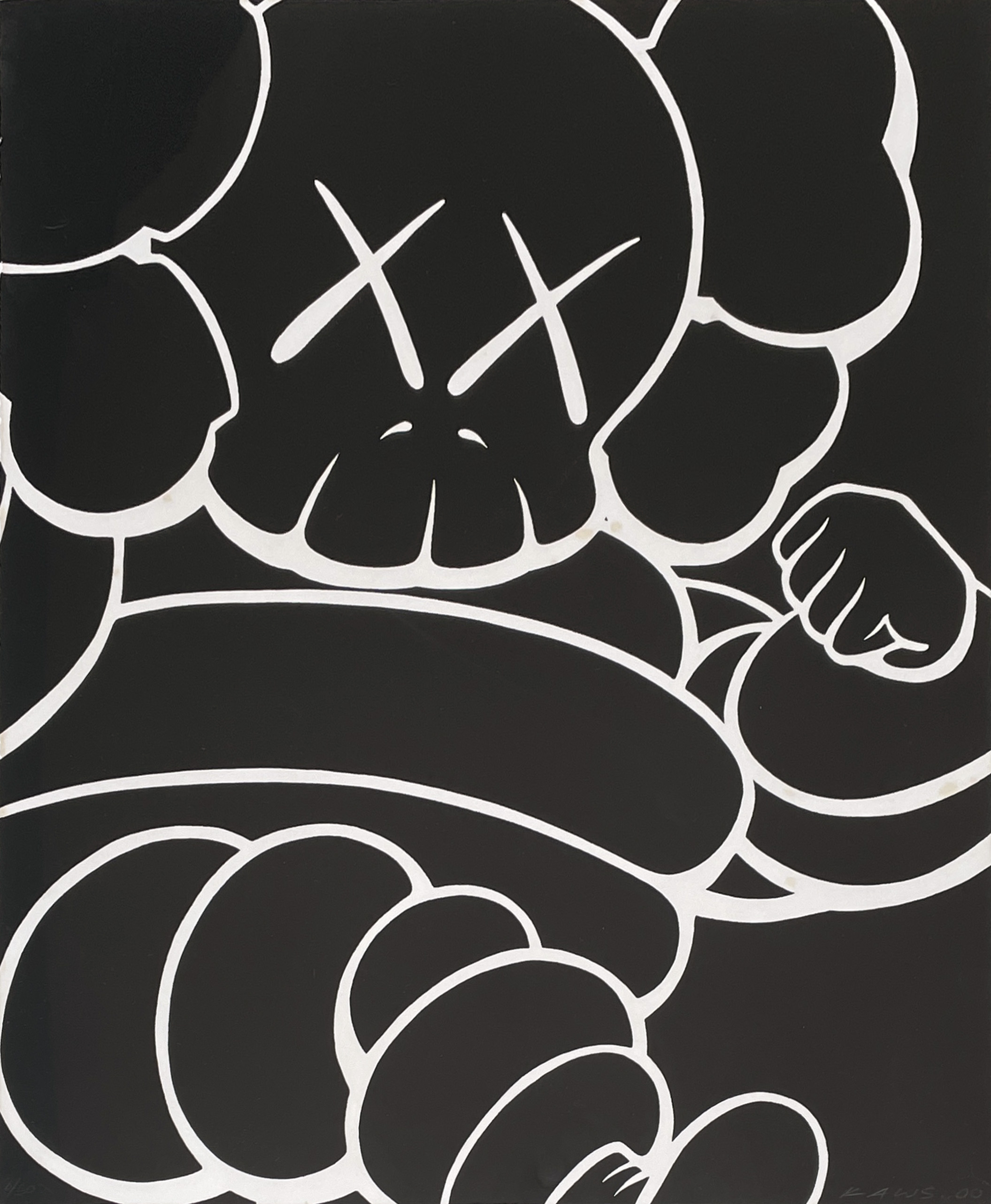 This early silkscreen print features KAWS's signature "Chum" character in motion, demonstrating the artist's foundational exploration of animated movement that would become central to his practice. Part of a limited edition of 50, the work showcases his refined printmaking technique while establishing key visual motifs that bridge street art aesthetics with fine art production.