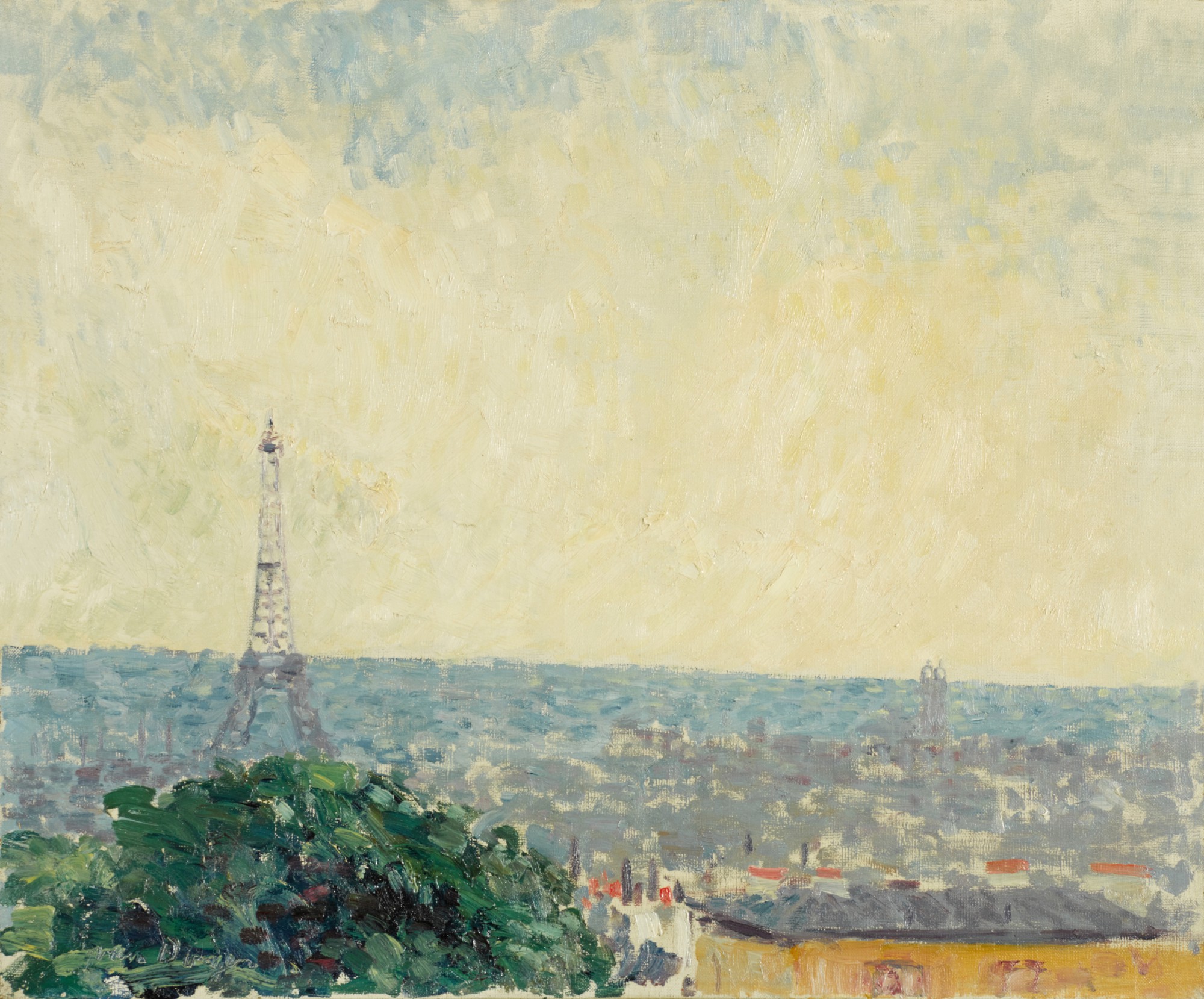 Kees van Dongen's 1904 oil on canvas painting depicts the iconic Eiffel Tower, a subject that captivated many early modernist artists. The work showcases van Dongen's characteristic bold use of color and dynamic brushwork in rendering this architectural landmark.