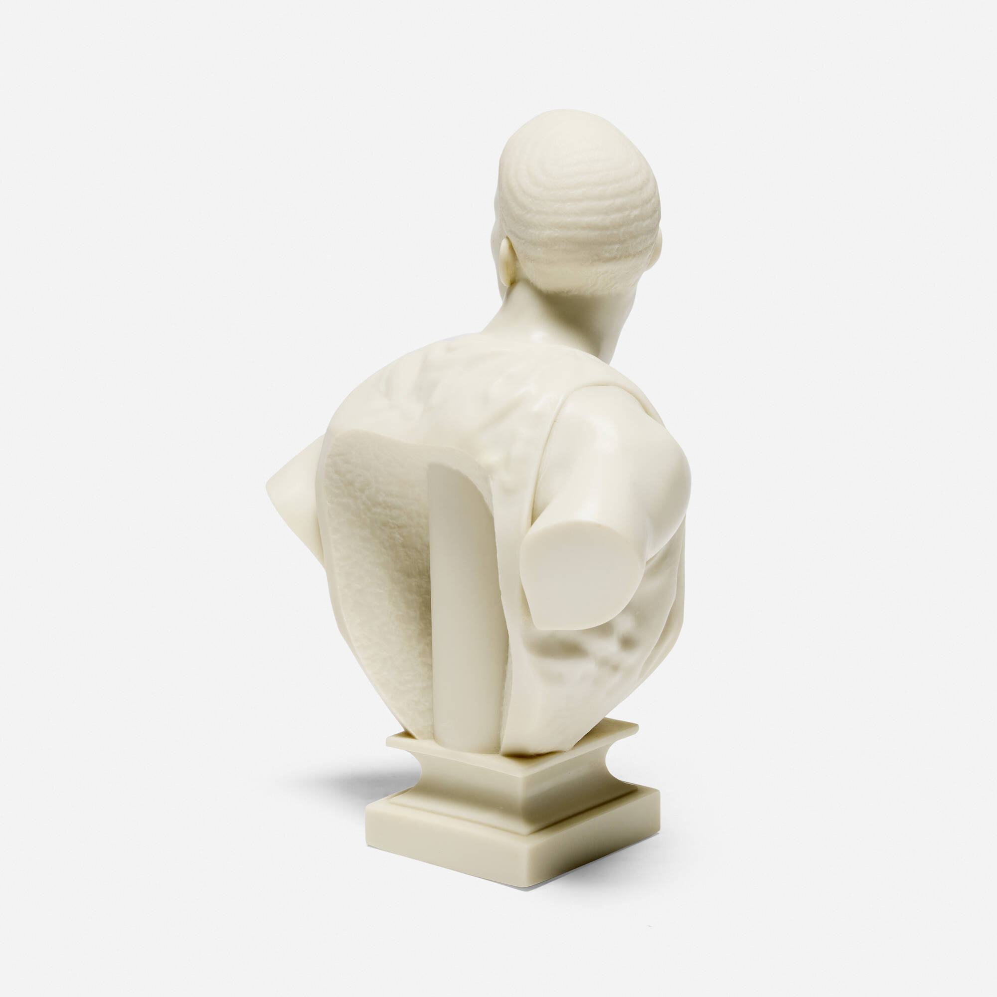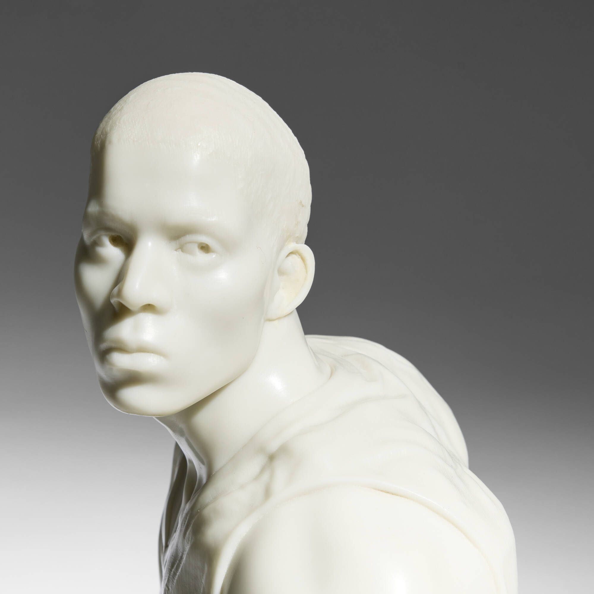 This sculpture by Kehinde Wiley, created in 2006, reimagines the classical figure from Jean Auguste Dominique Ingres's painting La Négresse through a contemporary lens. Crafted from cast marble dust and resin, the work challenges traditional art historical narratives by centering Black subjects in poses typically reserved for European ideals of beauty and refinement. The material choice of marble dust and resin creates a striking visual that references classical sculpture while simultaneously subverting its historical exclusions. Wiley's approach demonstrates how contemporary artists reclaim and recontextualize historical artistic traditions.