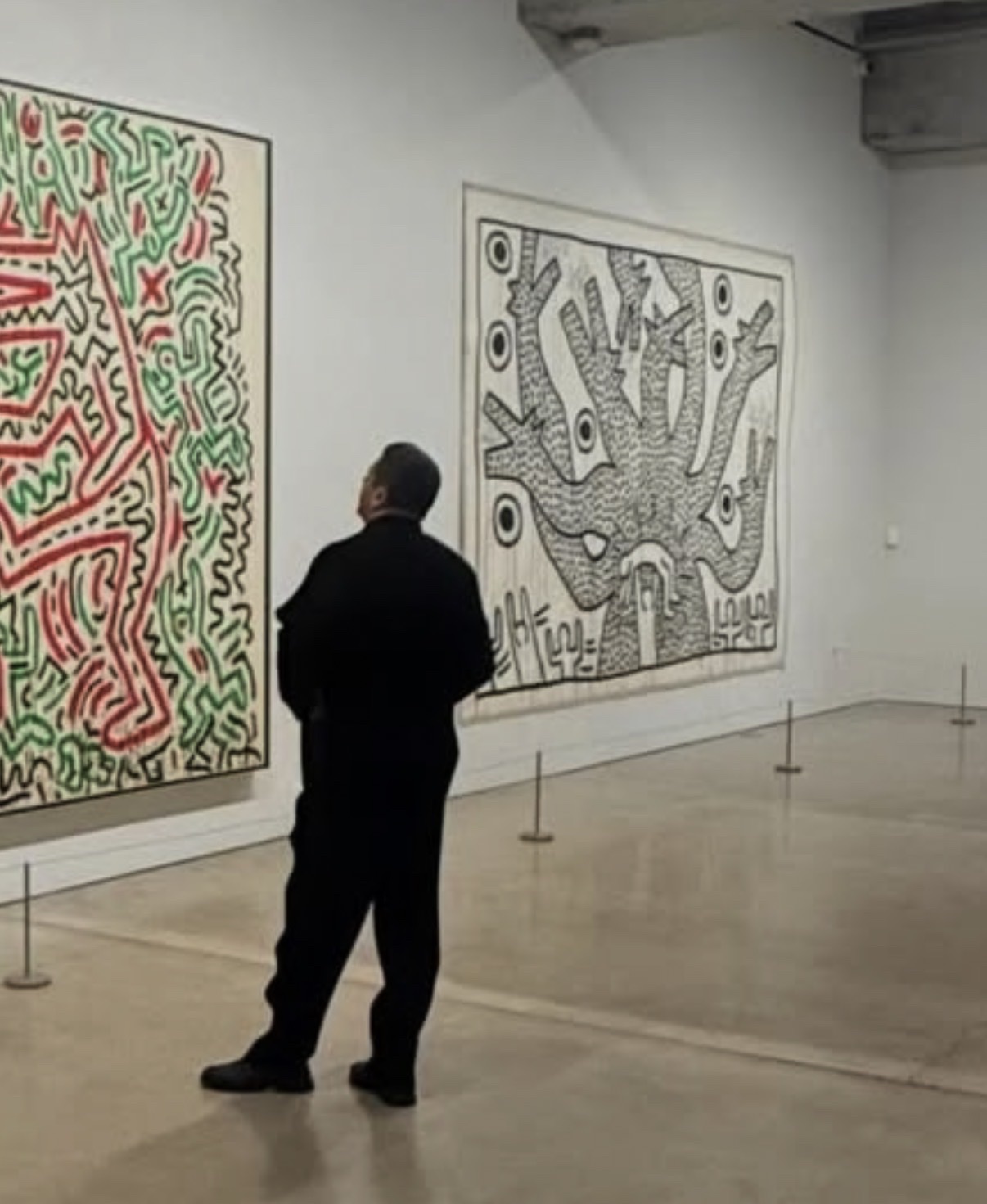 A close contemporary of Haring from the same downtown New York scene, Scharf created boldly outlined cartoonish figures and multi limbed creatures with a similarly playful yet primal energy rooted in pop culture and street art vocabulary.