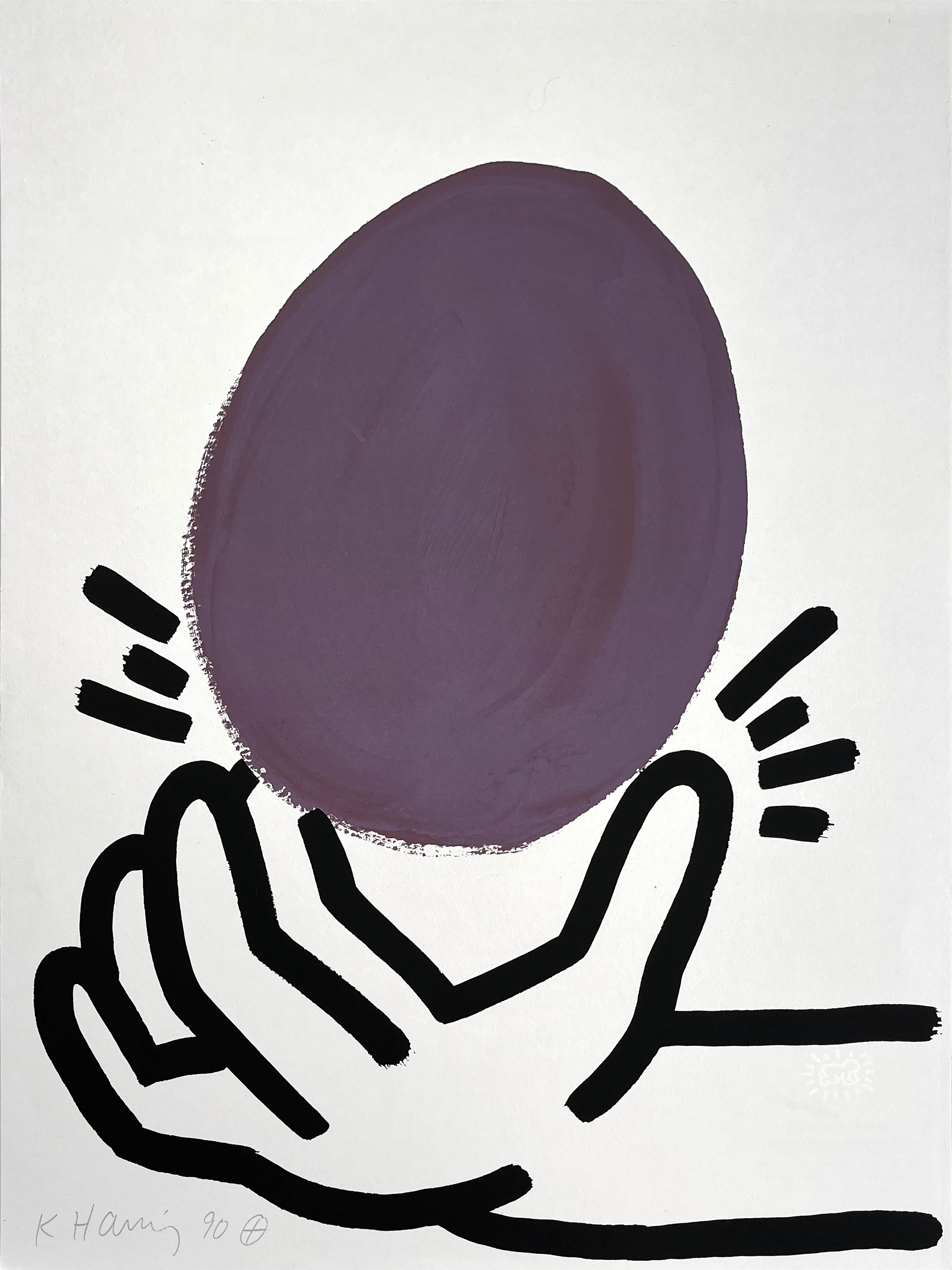 This lithograph from Haring's "Story of Red and Blue" series exemplifies his mastery of printmaking while maintaining his signature bold linework and dynamic figurative forms. Created in his final productive year, the work demonstrates his continued exploration of narrative through his iconic visual vocabulary of dancing figures and symbolic imagery.