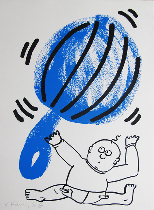 This vibrant lithograph exemplifies Haring's iconic visual language through bold, dancing figures rendered in his signature red and blue palette. Created during his final prolific period, the work demonstrates his mastery of printmaking techniques while maintaining the spontaneous energy and universal accessibility that defined his public art practice.