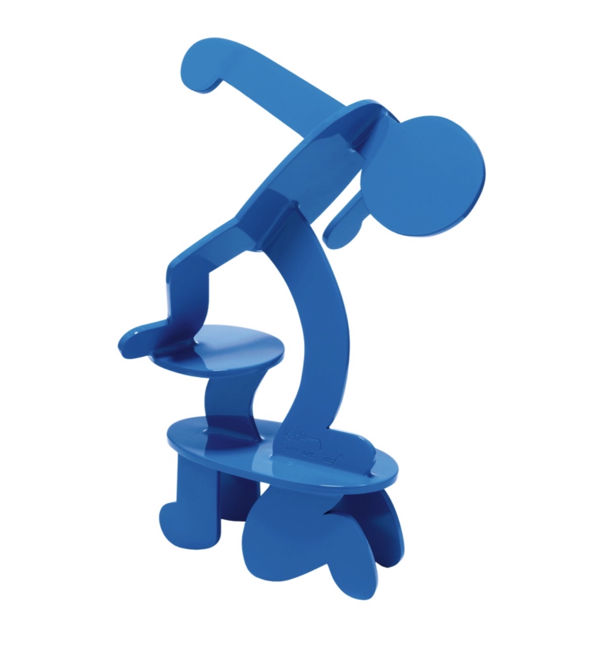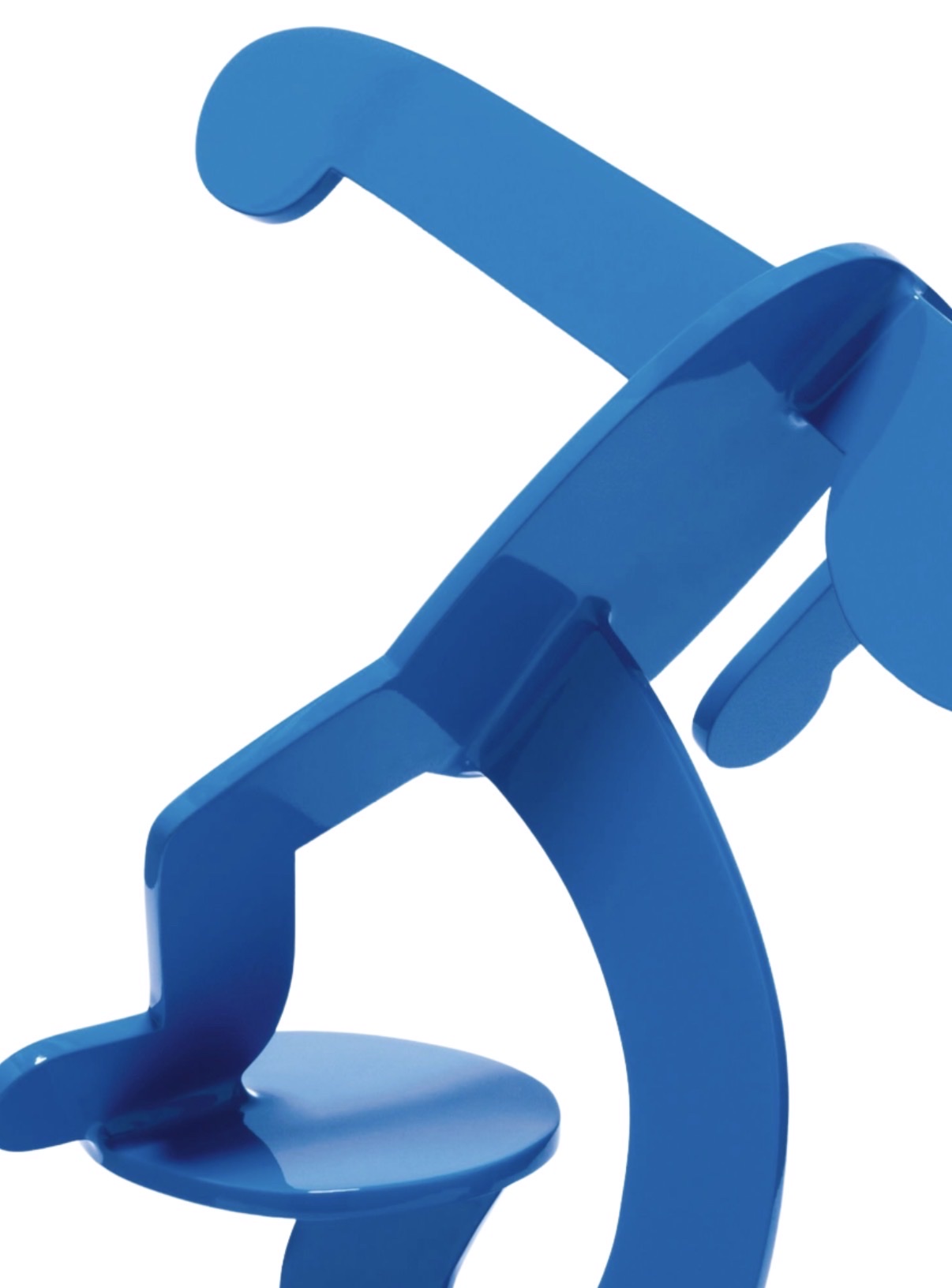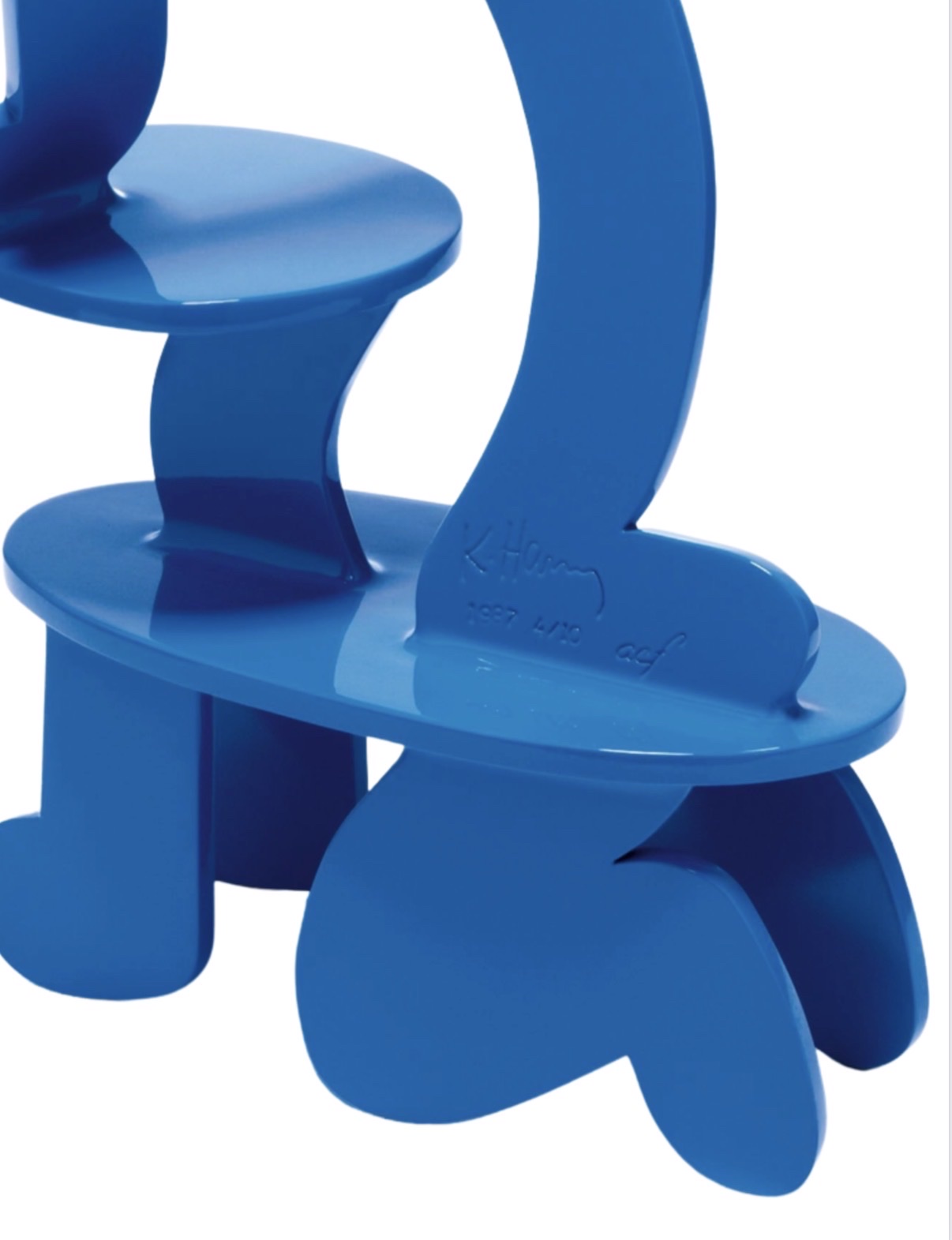 A vibrant blue enamel-painted aluminum sculpture depicting Keith Haring's iconic stick-figure vocabulary — a larger figure leaning over a smaller crawling baby figure below. This three-dimensional work translates Haring's signature flat graphic language into sculptural form with great energy and playfulness. Part of a limited edition of 10, hand-signed and numbered by the artist, and accompanied by a Certificate of Authenticity issued by the gallery. An exceptional opportunity to acquire a rare Haring sculpture in excellent condition.