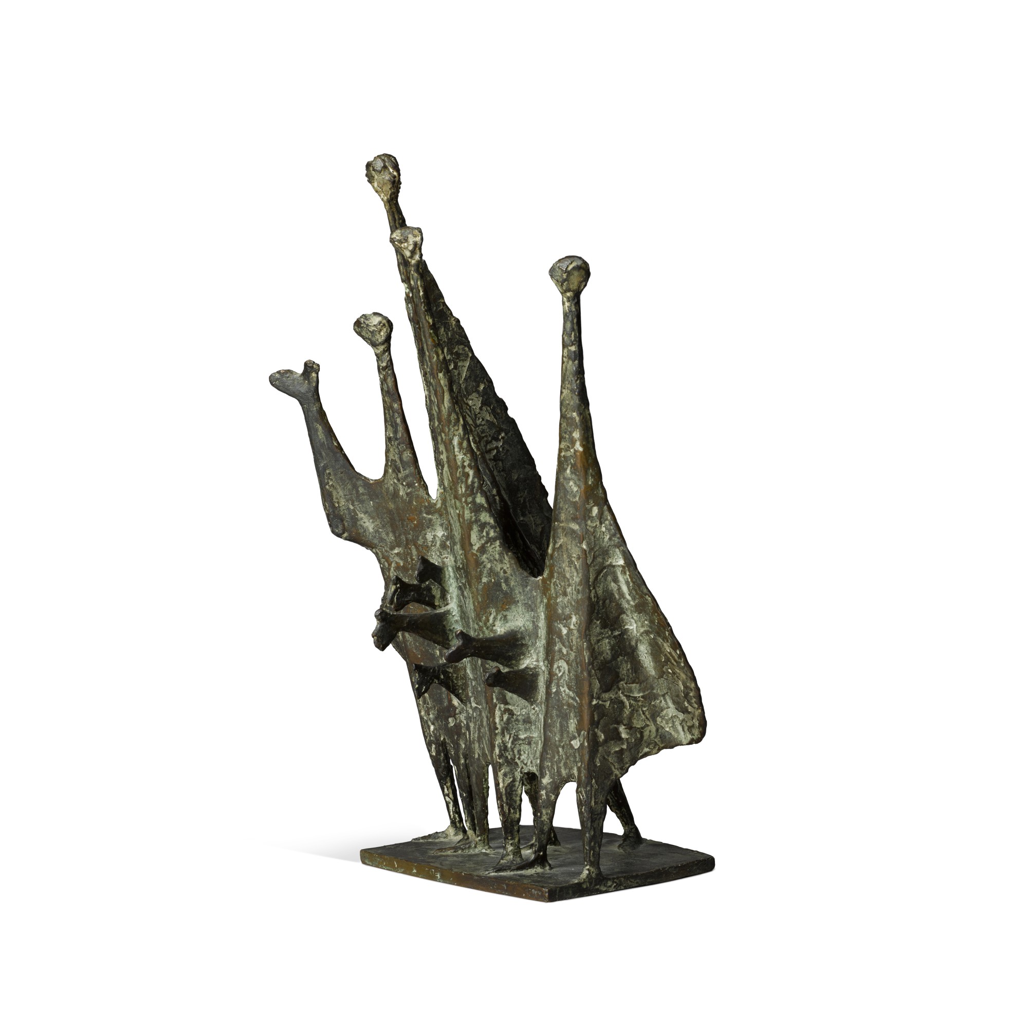 Kenneth Armitage's large bronze sculpture depicts human figures animated by wind and movement. People in the Wind showcases Armitage's exploration of dynamic form and human interaction.