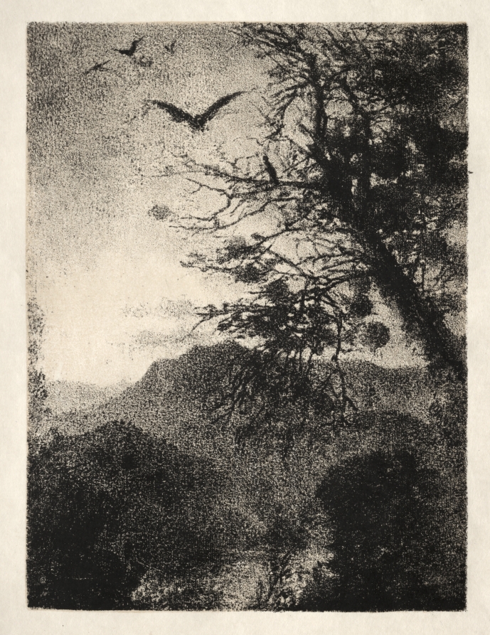 Mythological birds soar through a dreamlike landscape rendered in the soft, decorative style characteristic of the Nabis movement's emphasis on symbolism over naturalism.