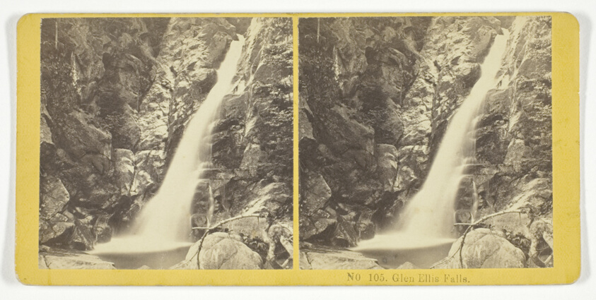 Showcasing the dramatic cascade that became a White Mountains landmark, this stereocard combines technical photographic skill with the era's romantic appreciation for nature's sublime power.