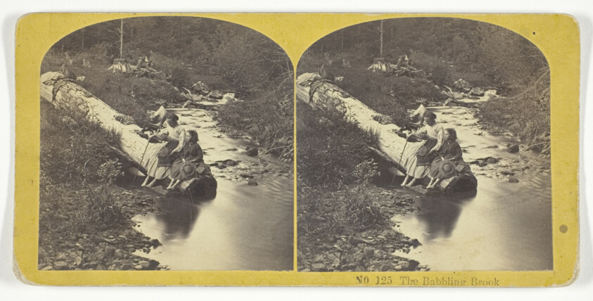 Employing poetic titling characteristic of Victorian sentiment, this pastoral stereocard transforms a simple woodland stream into an idealized vision of American natural beauty.