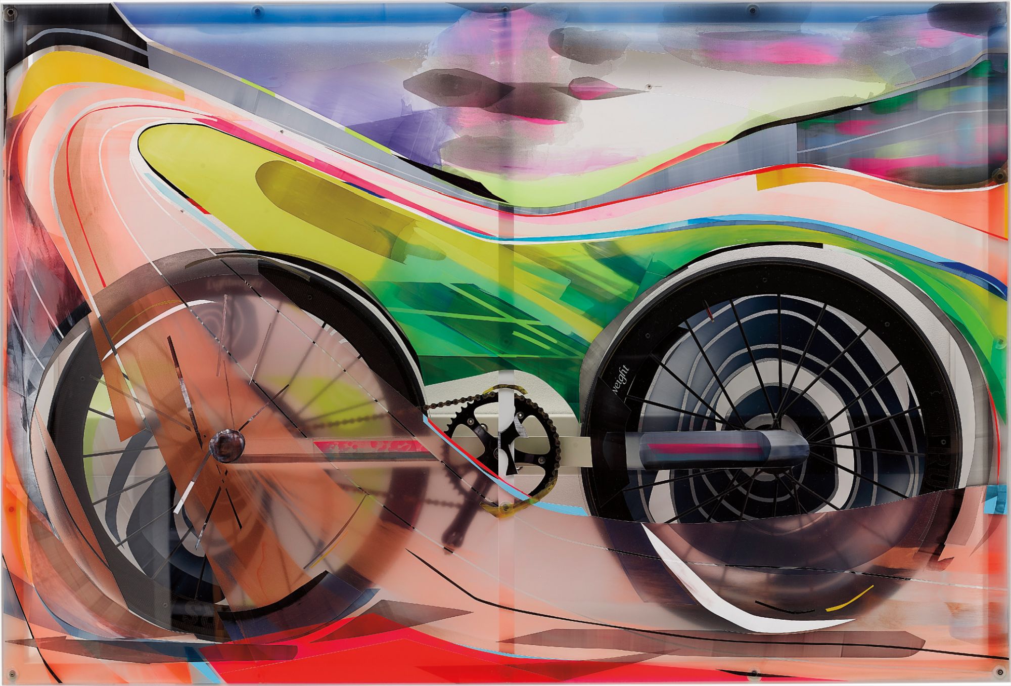 - acrylic, acrylic powder on aluminium, steel and rubber