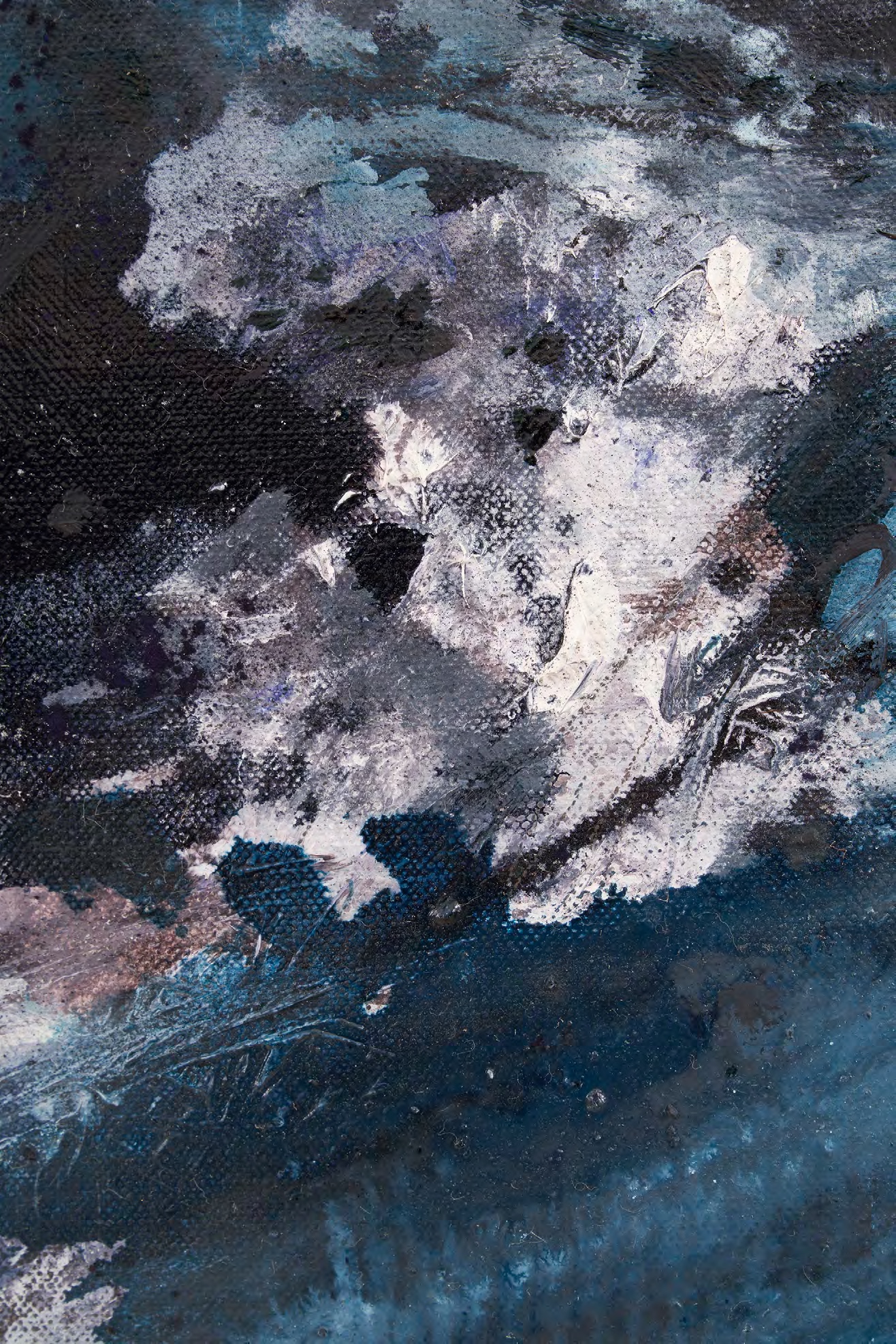 - Charcoal, graphite, oil, amorphous carbon char, and mica on linen