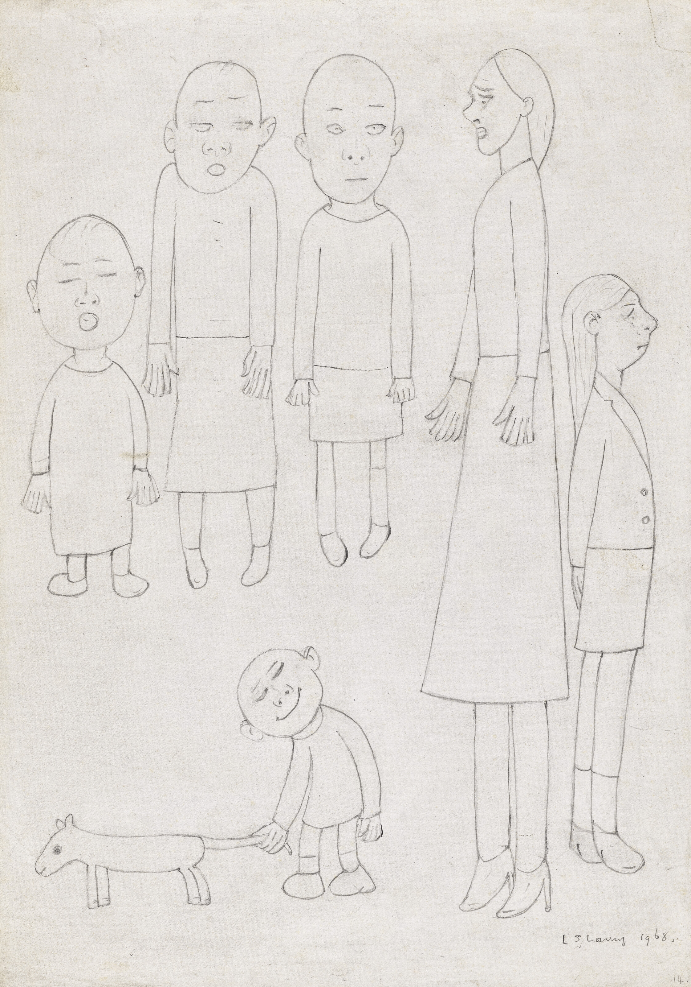 EXHIBITED London, Crane Kalman Gallery, LS Lowry RA (1887-1976): A 70th Anniversary Exhibition, October 2022 - February 2023. Salford, The Lowry, on long-term loan, 2013-2026. Conditions of sale Brought to you by Pippa Jacomb Director, Head of Day Sale PJACOMB@CHRISTIES.COM +44 (0) 20 7389 2293 LOT ESSAY We are delighted to be offering a selection of paintings and drawings from the Estate of L.S. Lowry which he bequeathed to the present owner. This is a unique opportunity for collectors to acquire works directly from the artist’s ownership, which have been on long term loan to museums since his death in 1976. Within this group are a number of strong portraits and figure groups, including the oil paintings Girl with white socks and Figures Talking and striking drawings, Group of figures and a dog, and A man taken ill. Works in the collection range from the early 1920s to the early 1970s, and include an important group of seascapes, including Grey Sea, a vigorously painted oil from 1970. Lowry travelled around the British Isles extensively after his retirement from the Pall Mall Property Company in 1952, and he continued to be inspired by his cast of northern characters, who stimulated him to continue to paint and draw for the rest of his life. These works have only been displayed to the public while being on loan to The Lowry, and we look forward to showing them to a wider audience.