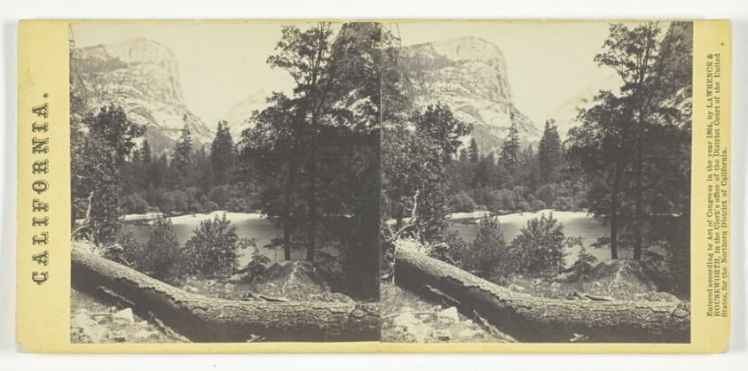 Among the earliest photographic records of Yosemite Valley, this stereo albumen print helped introduce Eastern audiences to the sublime natural wonders that would soon become America's first national park.