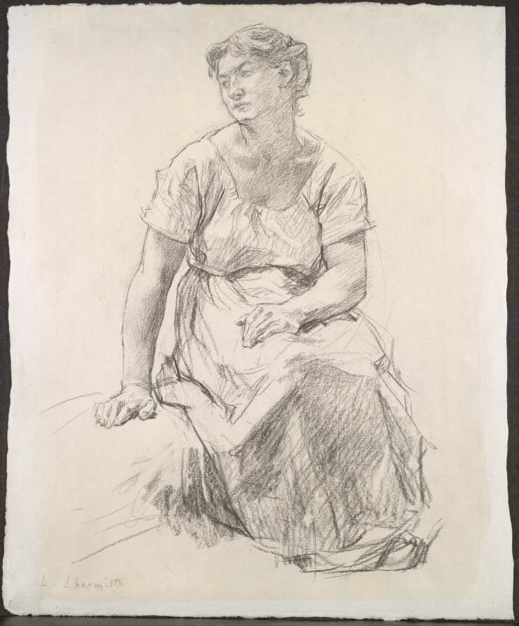 Lhermitte's work portrays simple peasants working in harmony with a bountiful natural environment without reference to industrial development, mechanization of farm work, and the depopulation of the countryside. His sturdy images of Champagne's rural life have a sober, unsentimental character in which the peasant figures are neither tidied nor prettified. The artist achieved his most personal expression in his charcoal drawings which first achieved critical success in London where they were exhibited from the early 1870s. By the 1880s, his drawings had gained wide popularity in France.