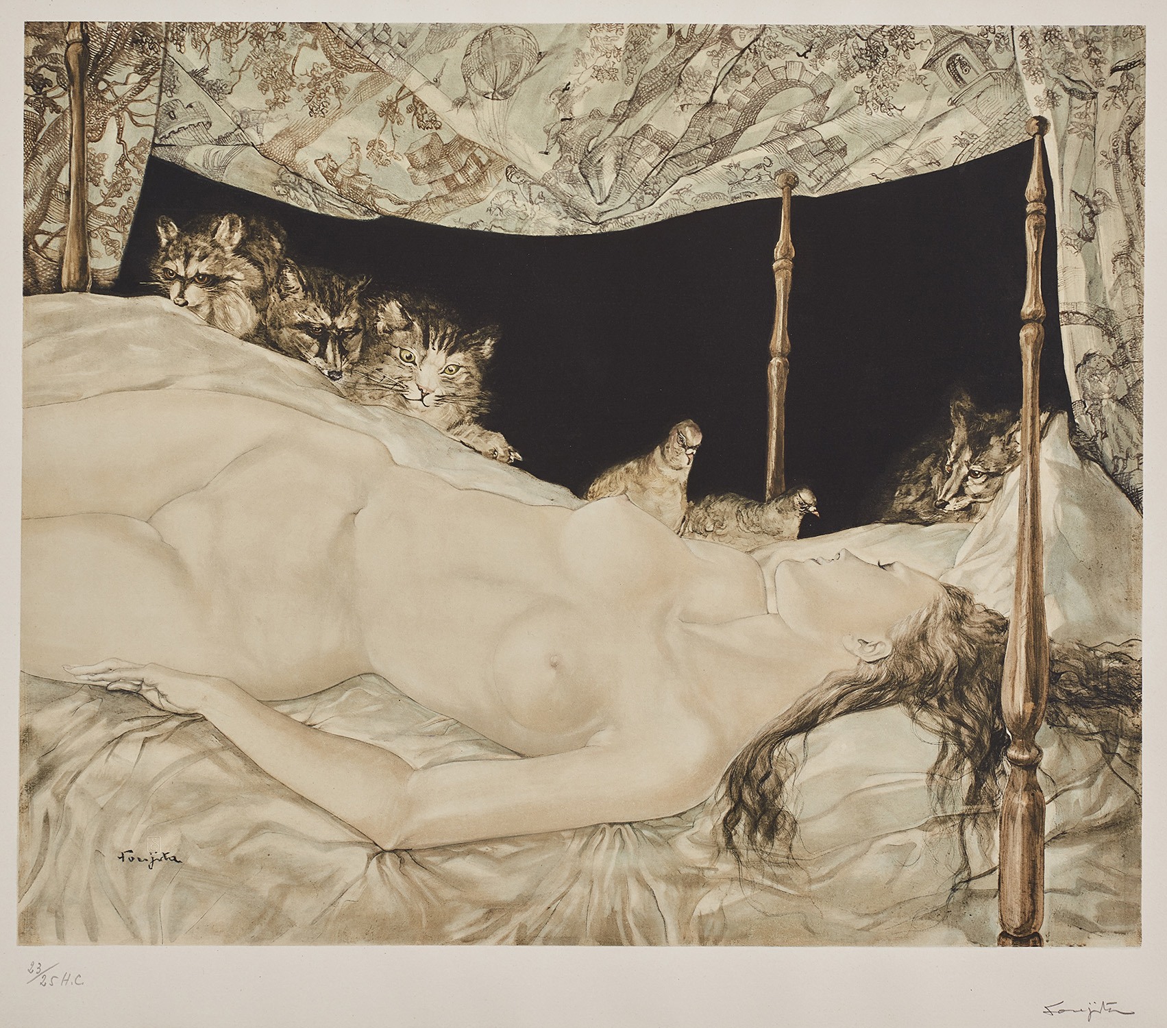 Léonard Tsuguharu Foujita's 'Le Rêve (The Dream)' is a colored lithograph printed on Arches paper with full margins. The work showcases Foujita's distinctive artistic voice blending Eastern and Western influences.