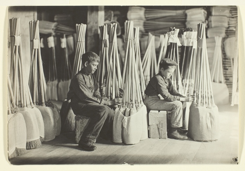 Industrial child labor appears in stark clarity through Hine's unflinching documentation of factory working conditions. The photograph's precise composition emphasizes both the scale of exploitation and the vulnerability of young workers.