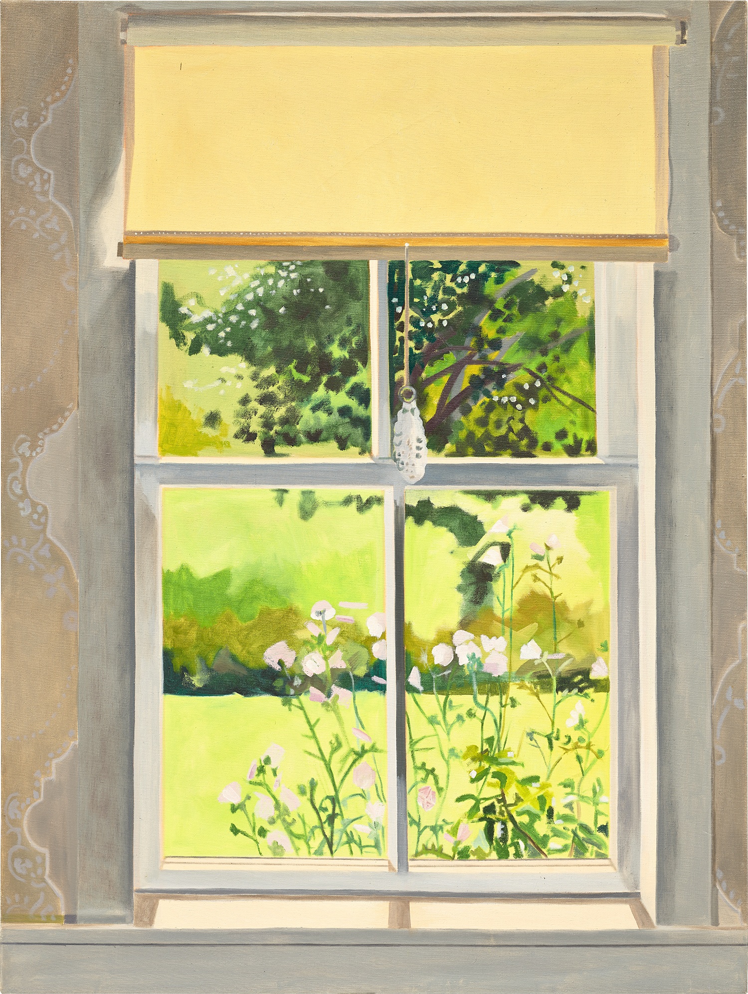 Lois Dodd captures the delicate beauty of wild geraniums in this intimate acrylic painting, rendering the small flowering plants with her characteristic directness and keen observational eye. Loose, confident brushwork conveys the organic energy of the blooms and foliage, balancing spontaneity with a quiet attentiveness to the natural world. The work reflects Dodd's enduring commitment to painting from life, finding poetry in the humble and overlooked corners of the everyday landscape.