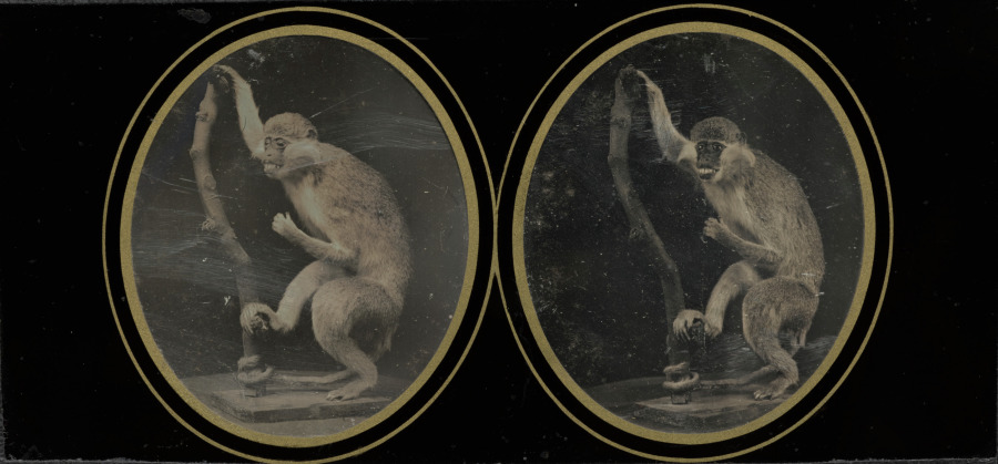 Early stereoscopic photography experiment captures three-dimensional effect through dual-image daguerreotype technique, showcasing mid-19th century optical innovations.