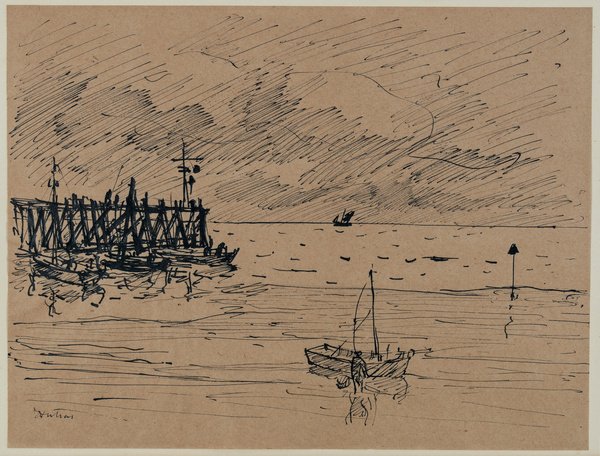 Antral's architectural composition demonstrates his skill in capturing the geometric interplay of maritime infrastructure and natural forms.
